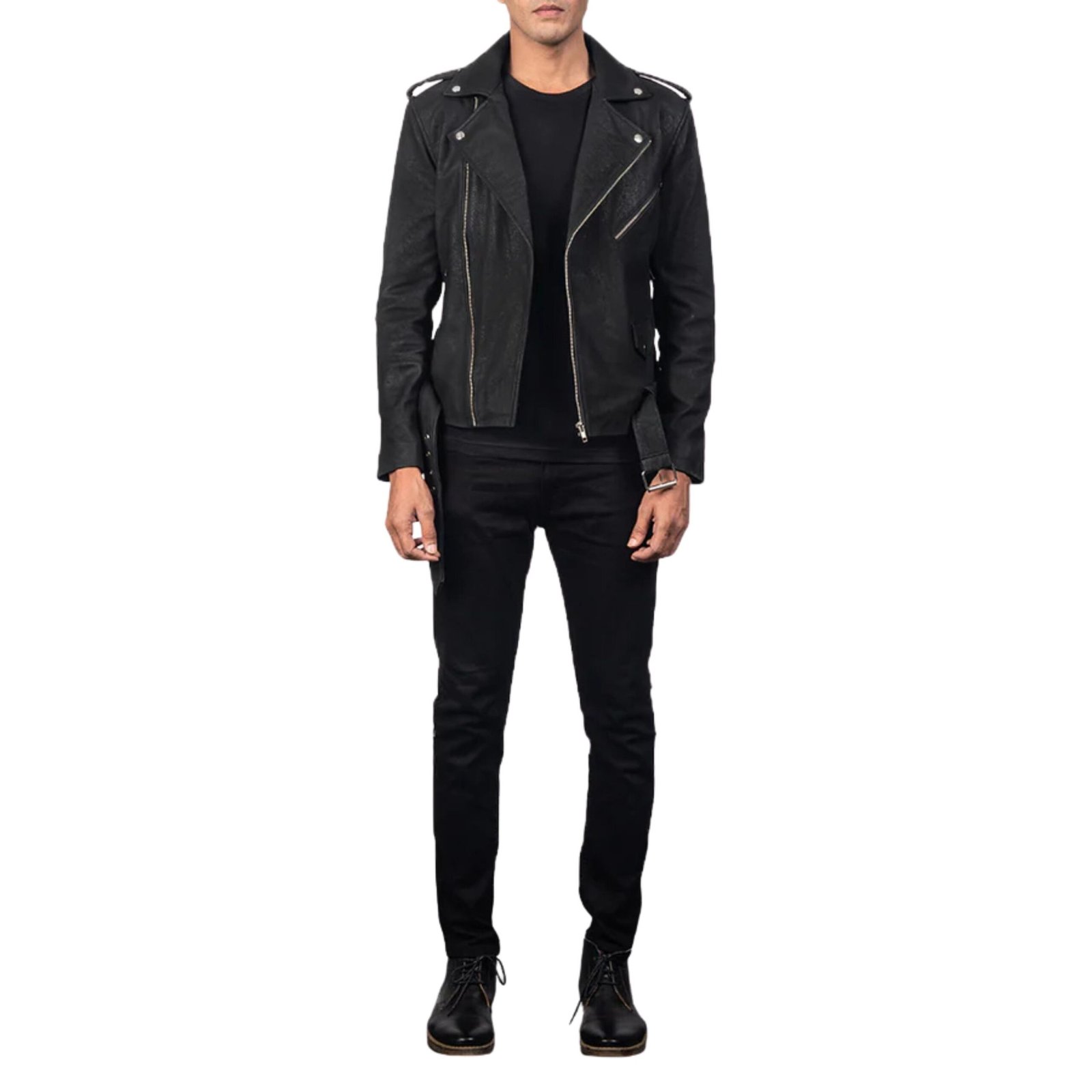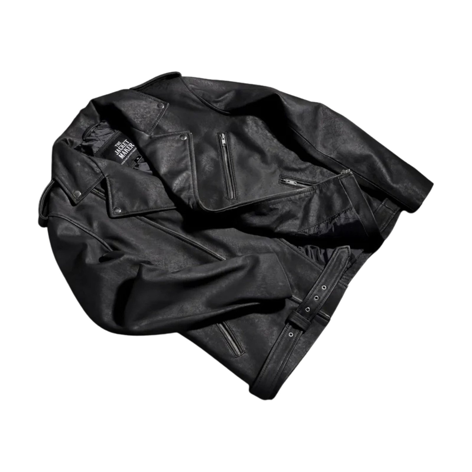 ALLARIC ALLEY DISTRESSED BLACK LEATHER BIKER JACKET