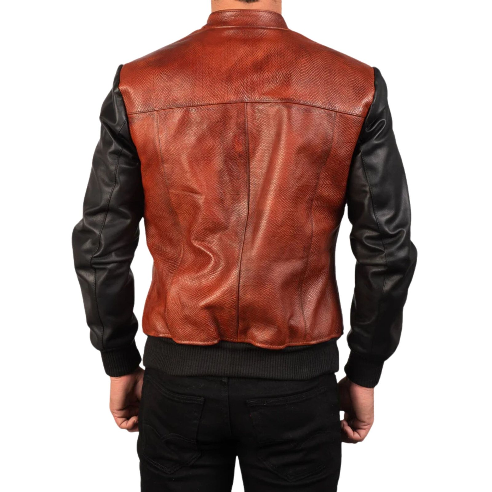 AVAN BLACK AND MAROON LEATHER BOMBER JACKET