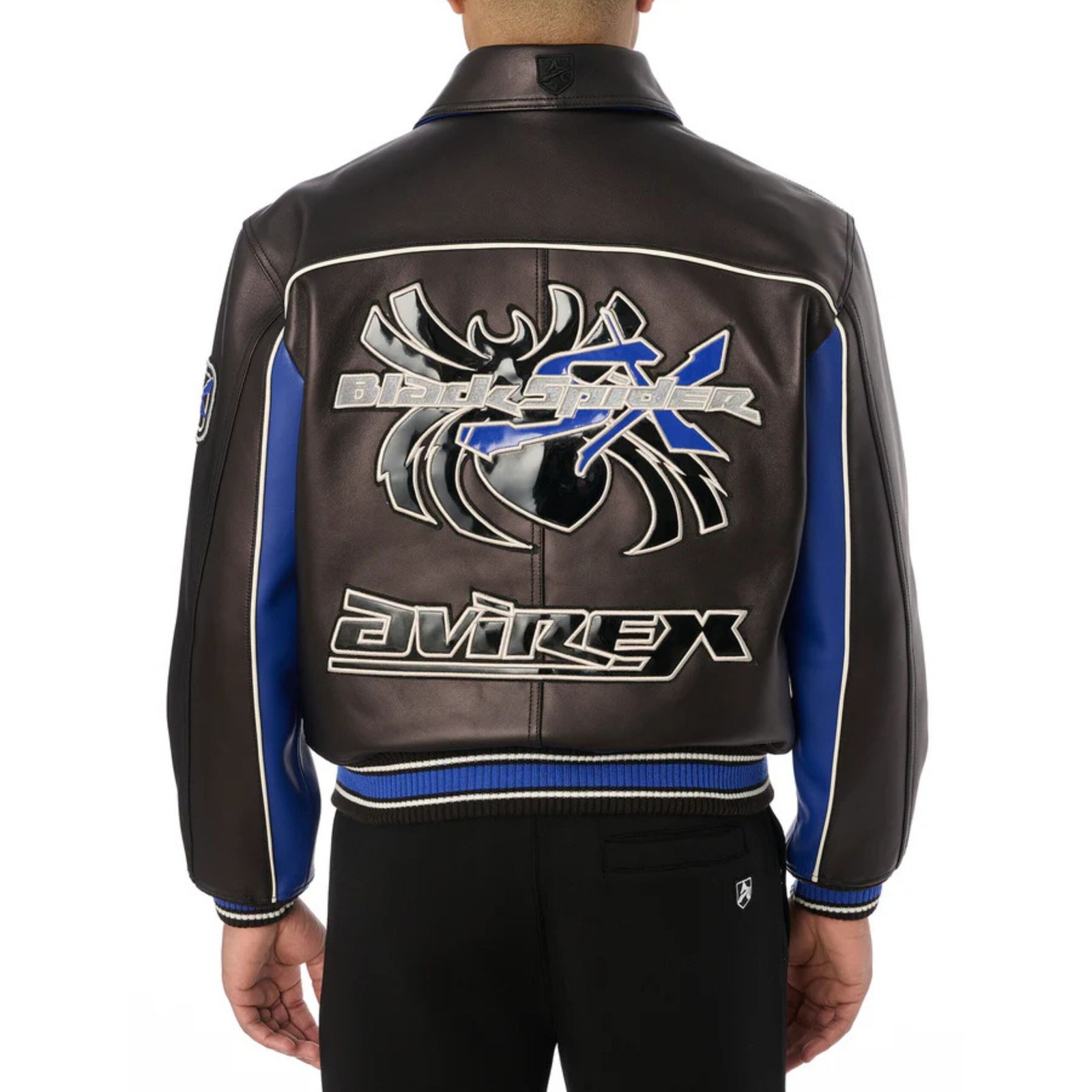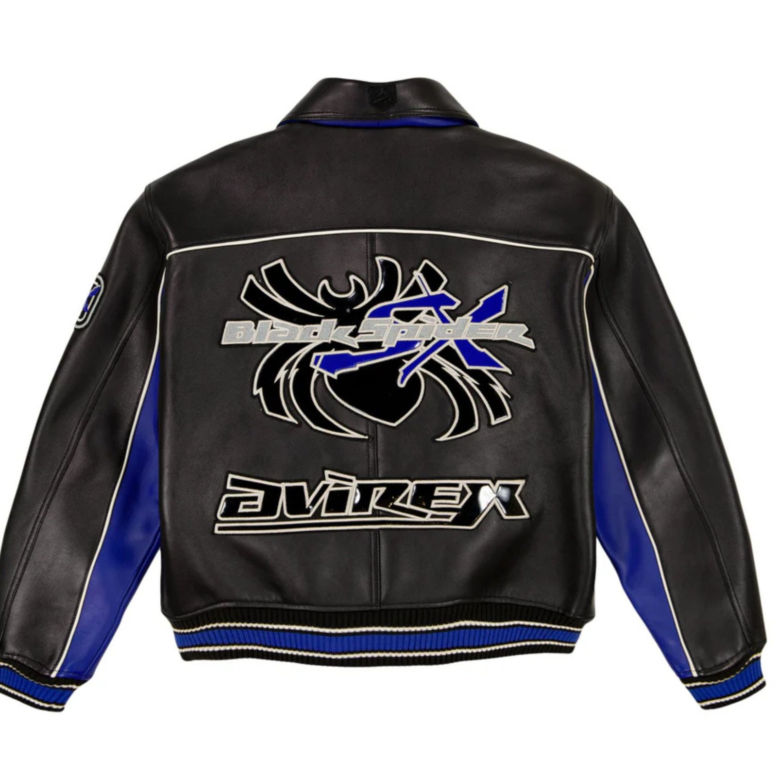 Here’s a detailed 300-word product description for the AVIREX BLACK SPIDER RACER JACKET: