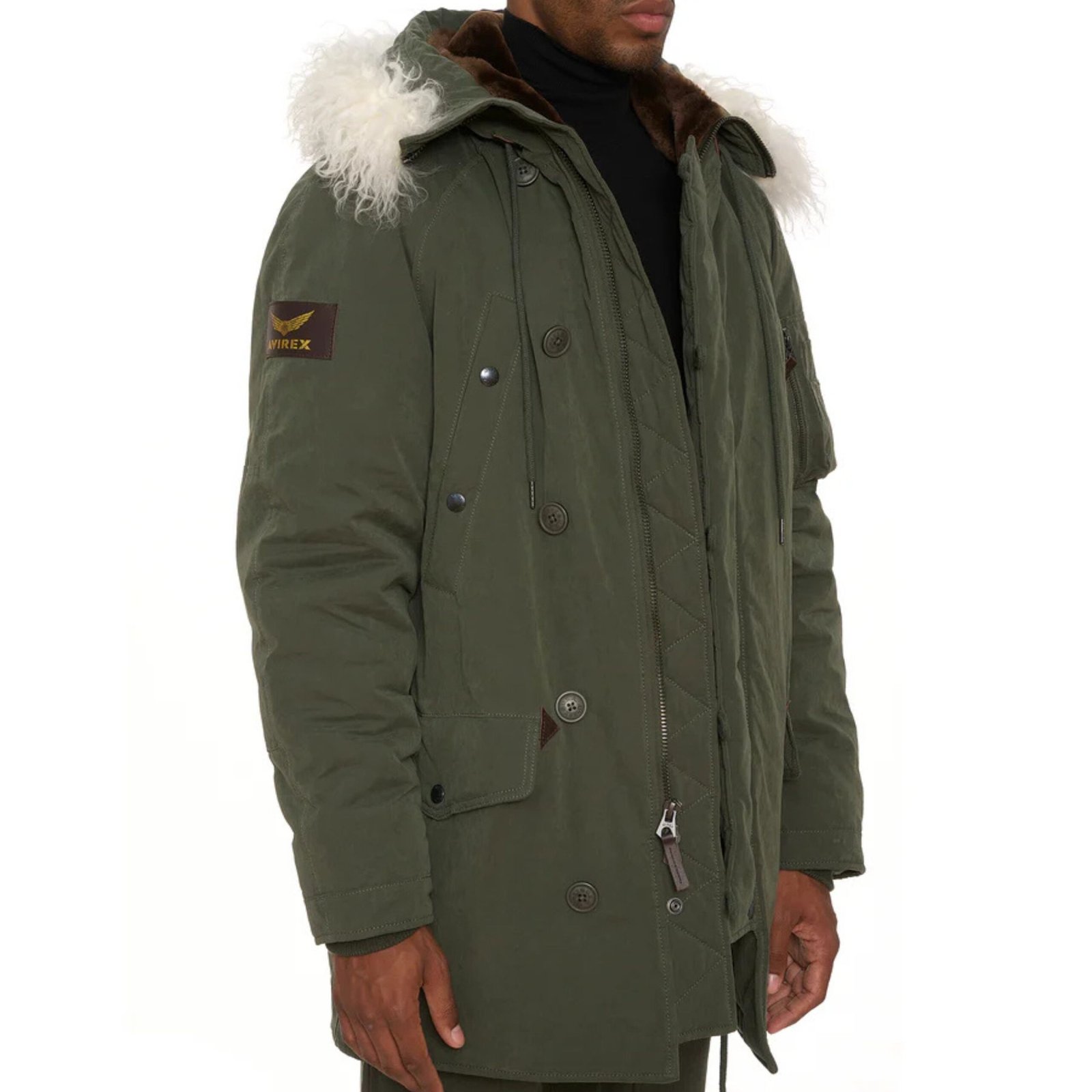 The AVIREX N-3B Snorkel Jacket combines rugged military heritage with contemporary style, featuring signature design details like the utility pocket on the sleeve and the durable fur-trimmed hood. Its structured silhouette provides a bold, commanding look without sacrificing mobility or comfort, making it perfect for both city streets and outdoor adventures.