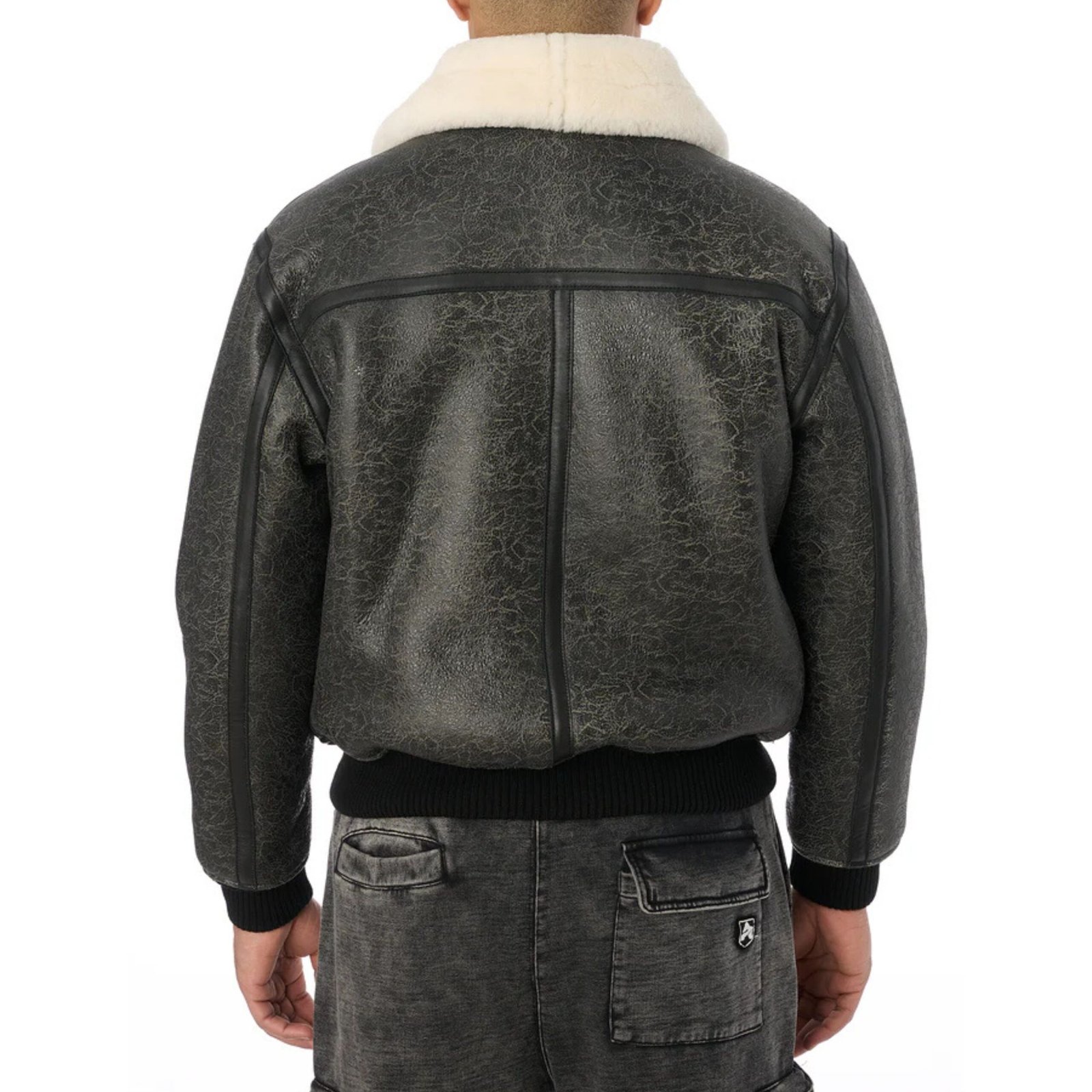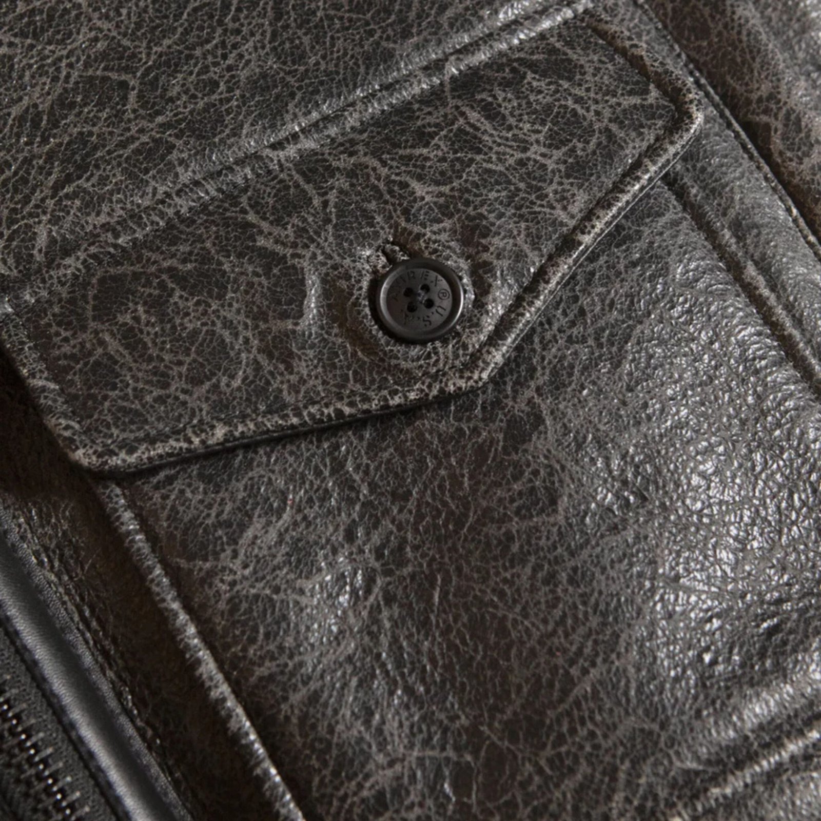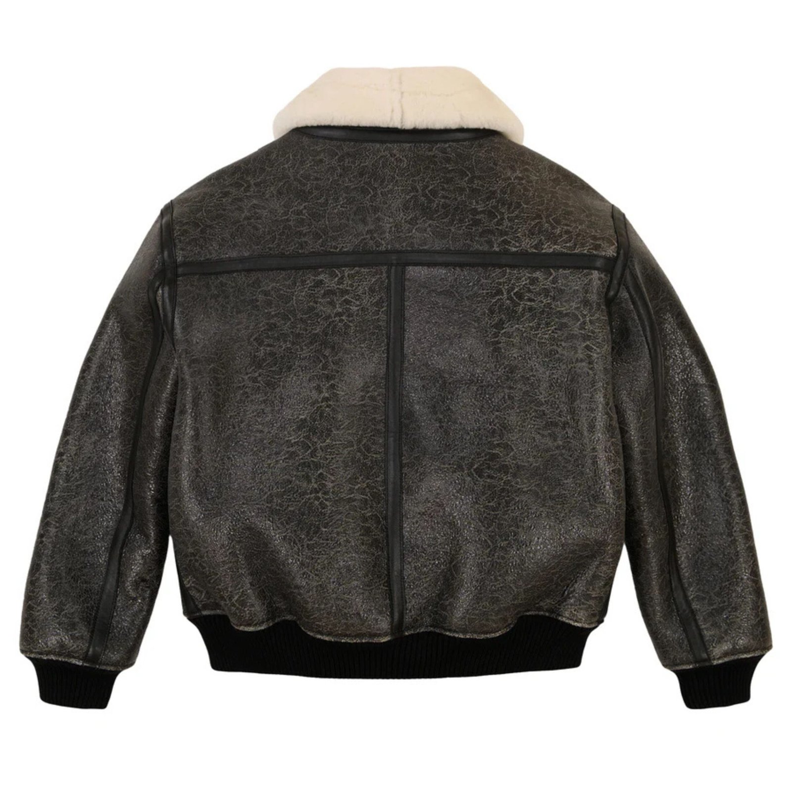 The exterior is crafted from high-quality, durable leather that provides excellent wind resistance and long-lasting durability. Soft, plush shearling lines the interior, collar, and cuffs, offering exceptional insulation and a luxurious feel against the skin. The shearling not only provides warmth but also adds a touch of authentic vintage appeal, creating a jacket that is both functional and fashion-forward.