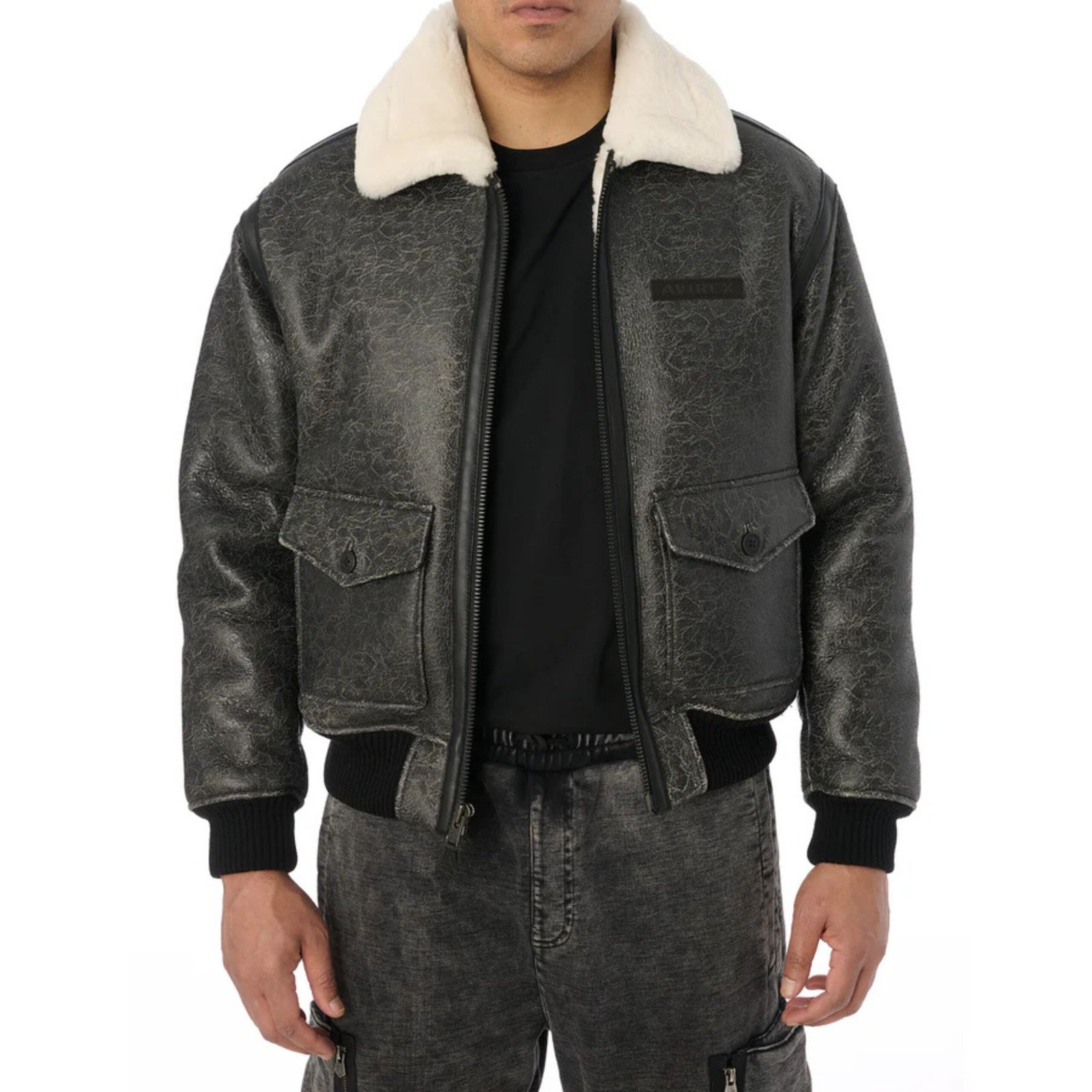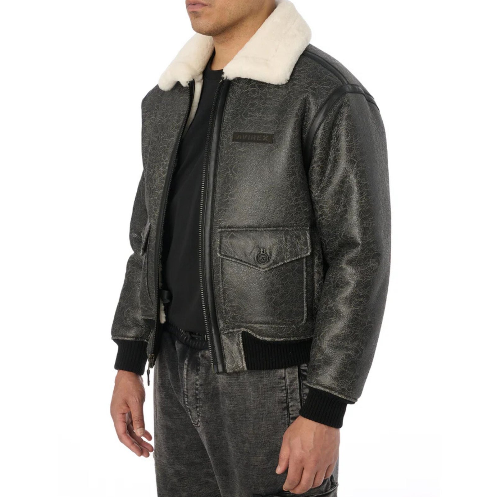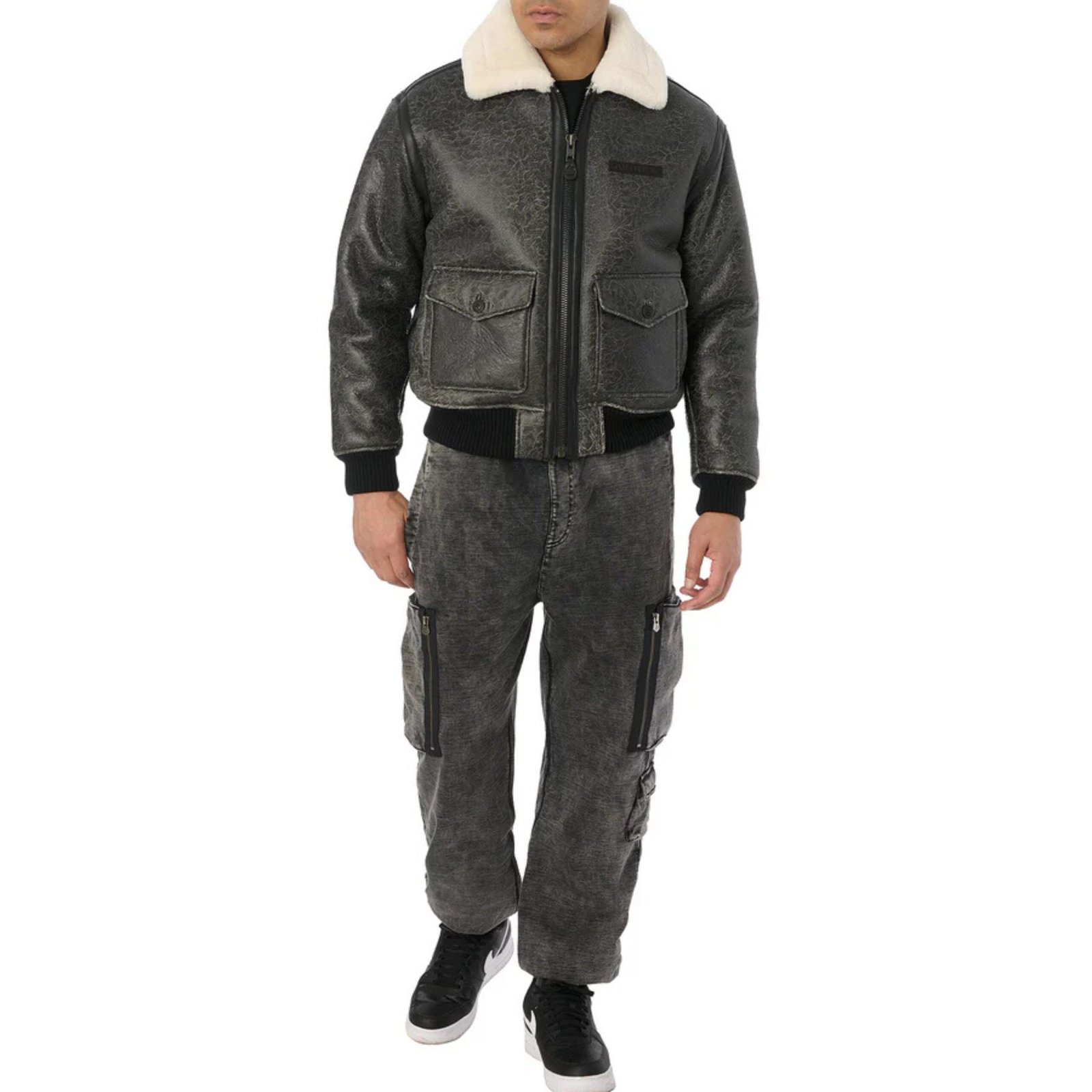 The exterior is crafted from high-quality, durable leather that provides excellent wind resistance and long-lasting durability. Soft, plush shearling lines the interior, collar, and cuffs, offering exceptional insulation and a luxurious feel against the skin. The shearling not only provides warmth but also adds a touch of authentic vintage appeal, creating a jacket that is both functional and fashion-forward.