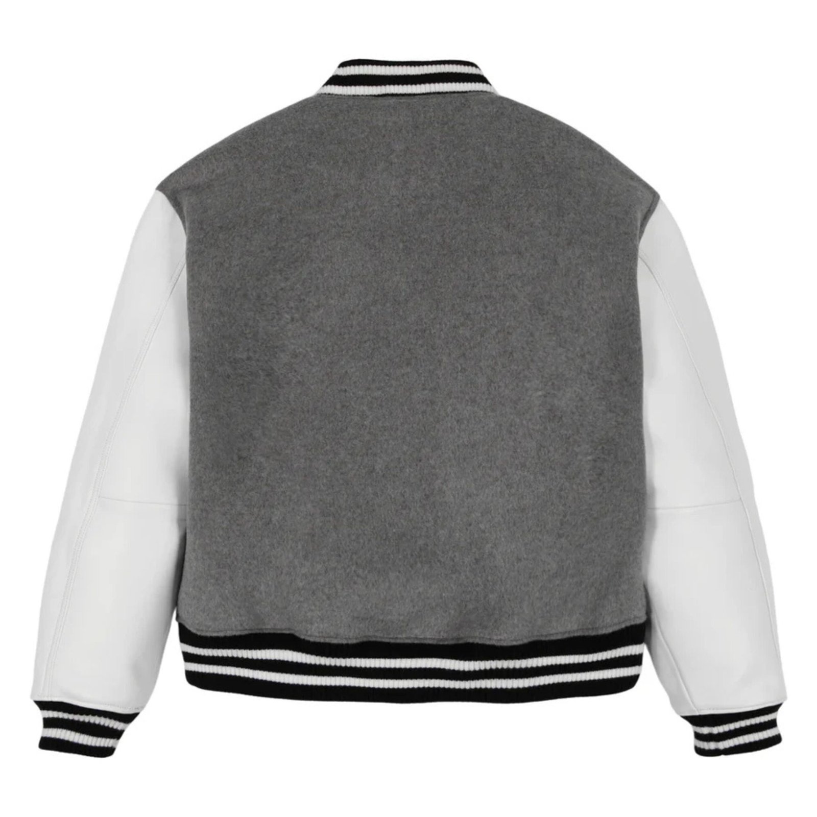 Signature ribbed trims on the collar, cuffs, and waistband maintain a secure fit and lock in warmth while adding to the classic varsity silhouette. The front features a durable snap-button closure for convenience and style, while functional pockets, including roomy hand pockets and interior compartments, offer practical storage for essentials. Reinforced stitching throughout ensures long-lasting durability, making this jacket a reliable piece season after season.