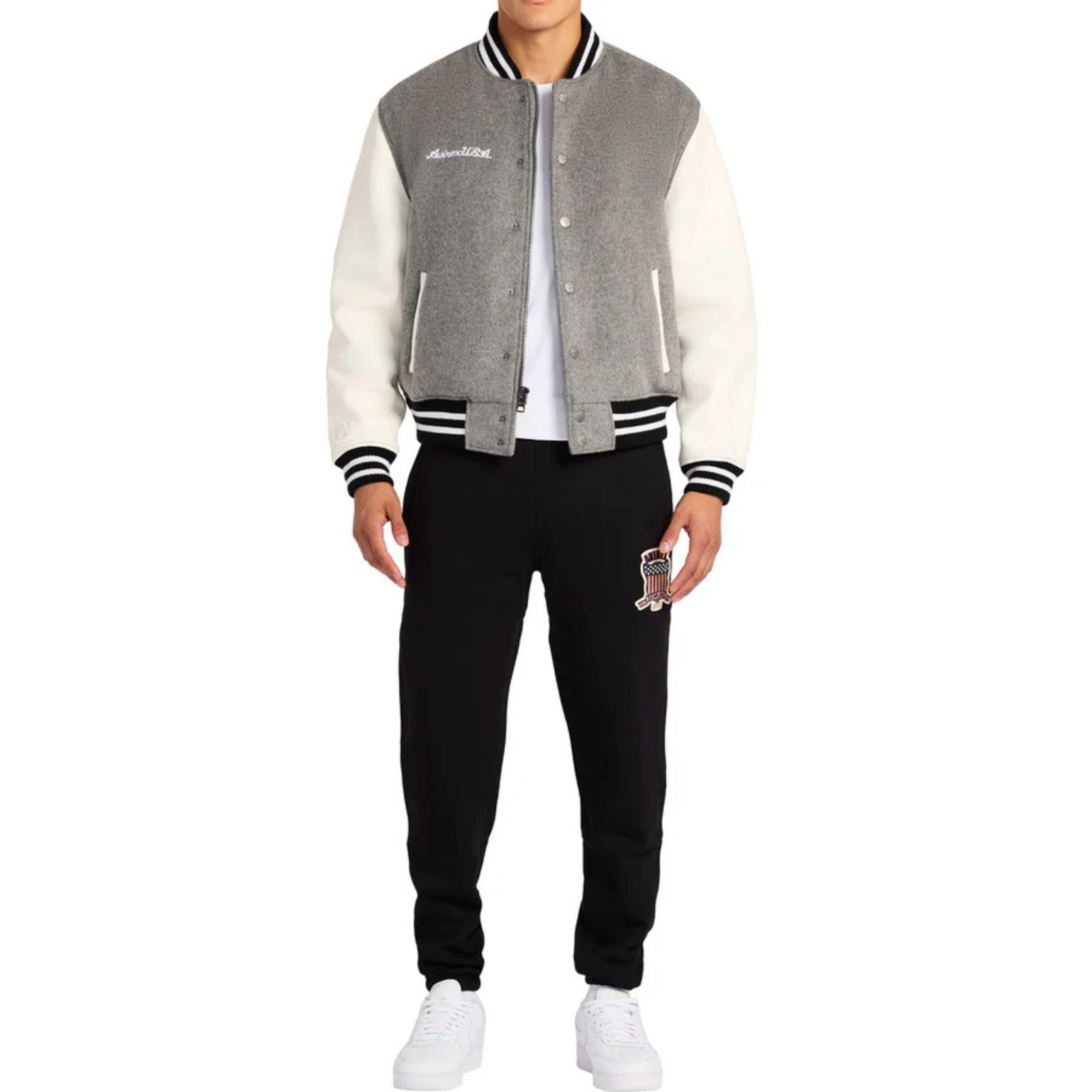 The AVIREX Wool Leather Varsity Jacket also includes iconic branding details, such as embroidered logos, chenille patches, and subtle metallic accents, adding personality and authenticity without overwhelming the overall design. Its tailored, athletic cut provides a flattering fit that sits comfortably at the shoulders and drapes neatly through the torso, balancing casual ease with refined sophistication.