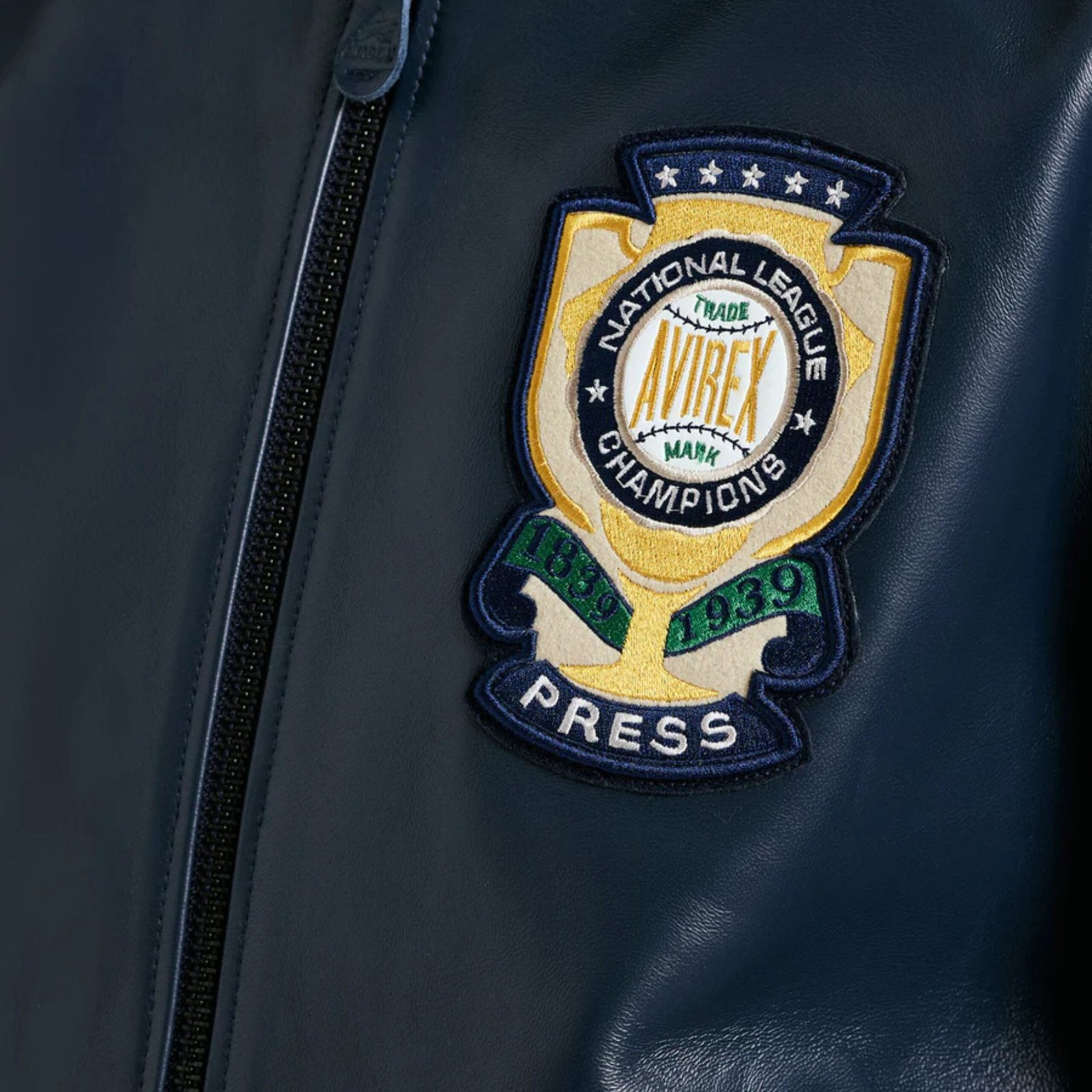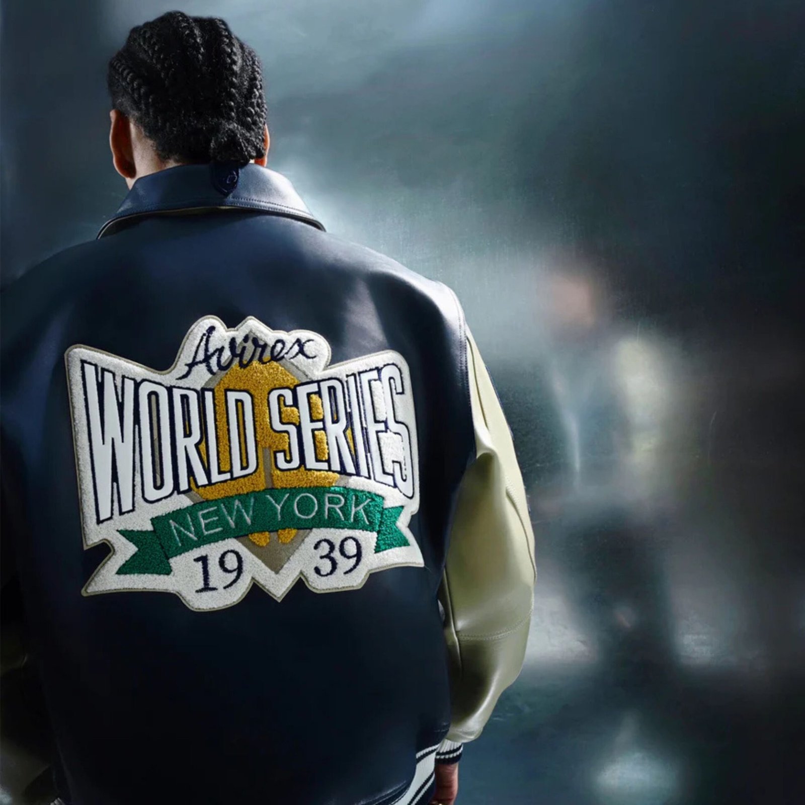 The AVIREX World Series Jacket features iconic branding and detailing that pay homage to its sports-inspired roots. Subtle embroidery, chenille patches, and metallic accents add depth and texture, giving the jacket a premium, authentic look. Its tailored cut provides a comfortable fit that drapes naturally across the shoulders and torso, combining athletic elegance with casual appeal.