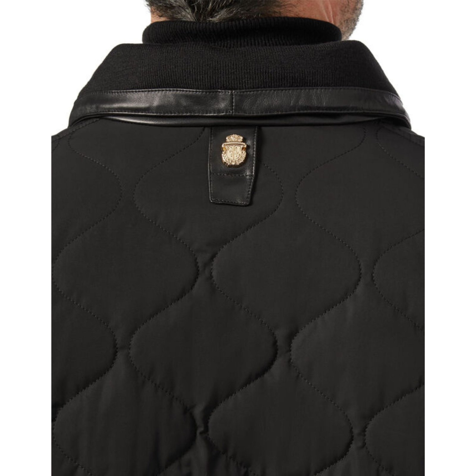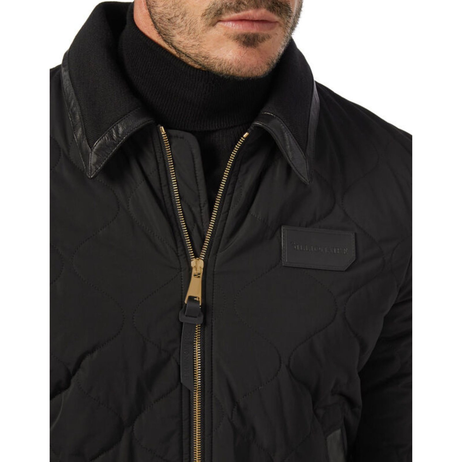 The jacket’s diamond-quilted nylon construction provides a refined texture while offering lightweight warmth, perfect for layering throughout the seasons. Its smooth finish and structured silhouette create a polished look, while subtle leather details add a touch of luxury, enhancing the overall aesthetic without overpowering the design.