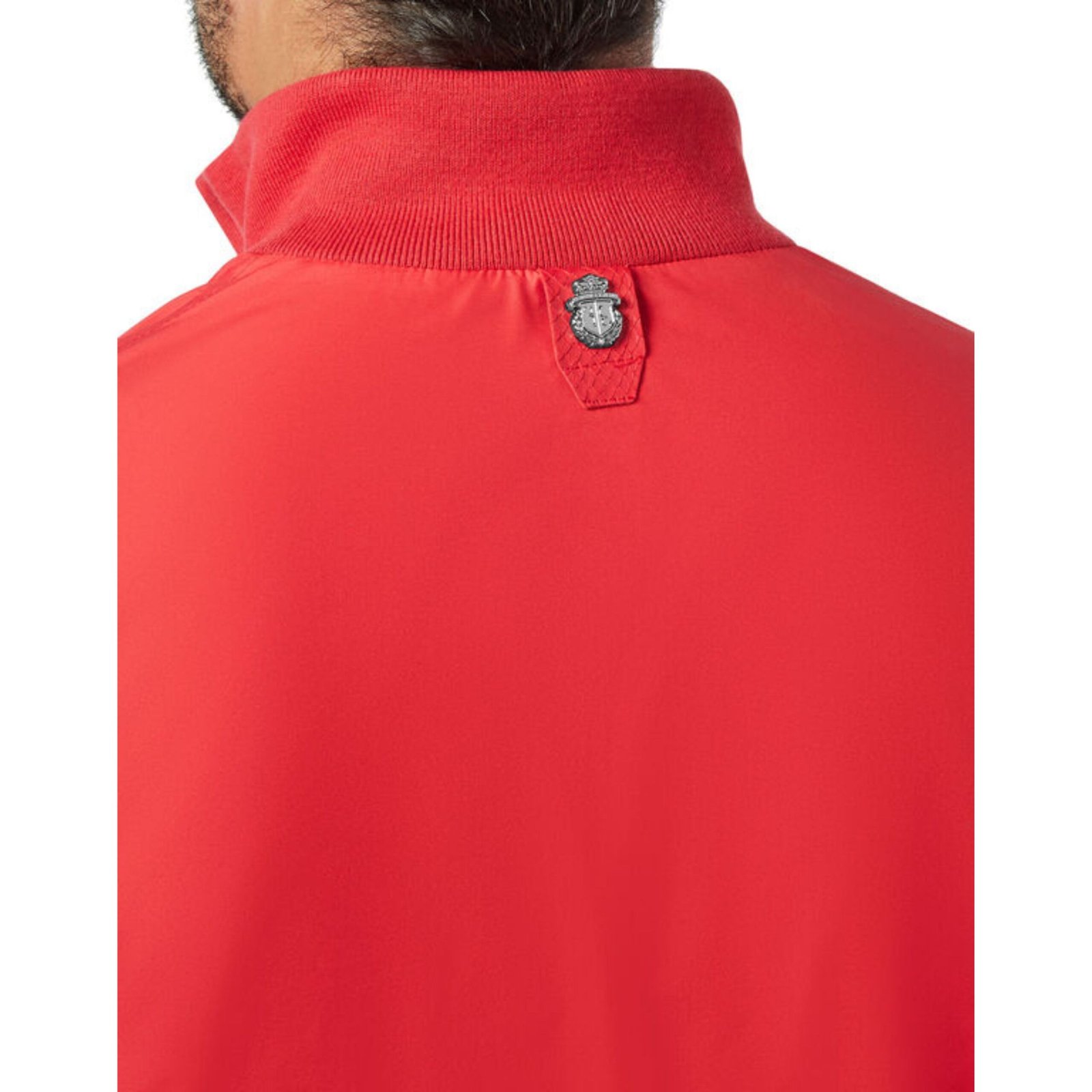 Practicality meets luxury with two flap pockets at the front, providing functional storage while preserving the clean, tailored lines of the jacket. The Maison’s monogram is printed on an emblem sewn at the left chest, offering a subtle yet unmistakable mark of prestige, while a metal emblem on the hanging loop at the yoke adds an additional accent of craftsmanship and exclusivity. Together, these elements highlight the attention to detail and heritage that define the Billionaire brand.