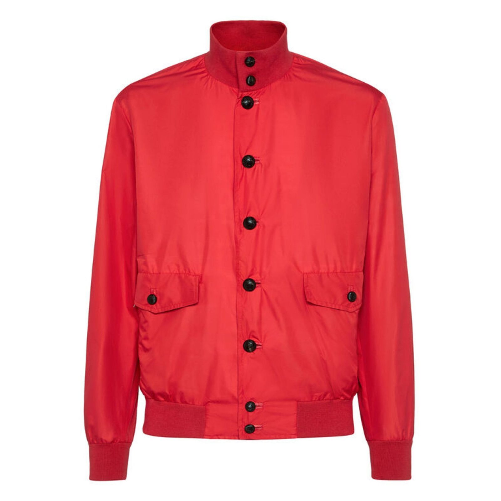 The jacket features subtle elaphe-inspired accents that bring texture and sophistication to its sleek nylon satin surface, giving the bomber a distinctive, high-end appeal. A buttoning collar adds structure and refinement, while ribbed cuffs and a bottom hem ensure a comfortable, secure fit that maintains the jacket’s classic shape. These details balance the sporty heritage of the air-force design with contemporary elegance, making it versatile enough for both casual and semi-formal occasions.