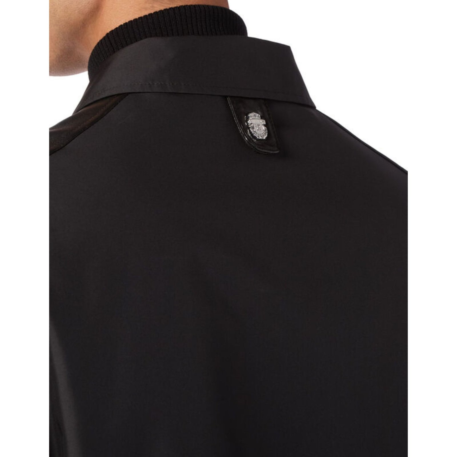 The jacket features carefully curated accents that emphasize craftsmanship and brand identity. A tiny metal Crest-shaped stud adorns the hanging loop at the yoke, offering a subtle nod to Billionaire’s signature detailing. These thoughtful touches elevate the jacket from simple outerwear to a piece of wearable luxury.