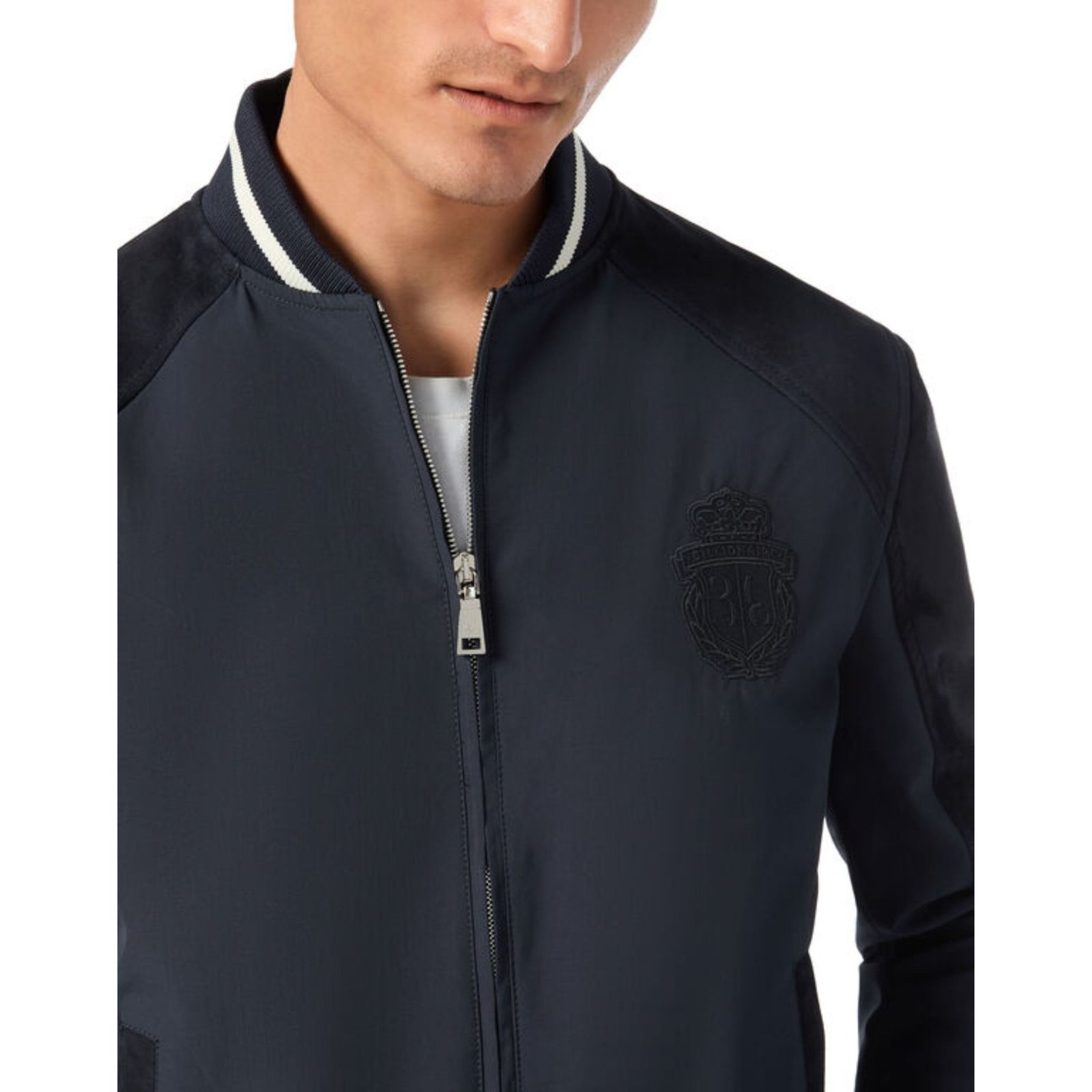 The jacket’s outer shell is crafted from luxurious cotton duchess fabric, offering a smooth, structured finish that exudes sophistication while maintaining comfort and flexibility. Subtle suede accents add a touch of texture and richness, creating a layered, multidimensional aesthetic that sets this bomber apart from conventional sporty outerwear.