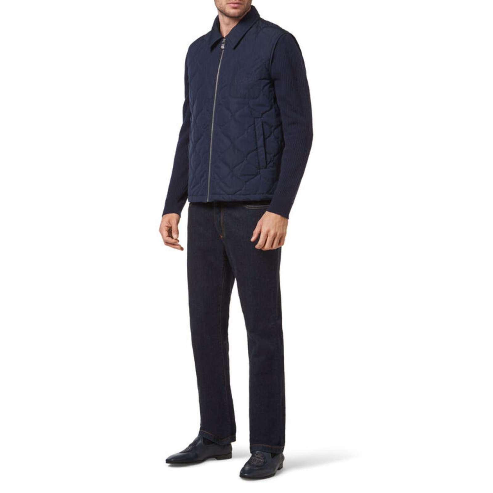 A standout feature of this jacket is the brand’s iconic Lion emblem, proudly displayed as an embroidered patch, symbolizing strength, elegance, and individuality. This striking detail elevates the design, turning a functional garment into a statement piece that reflects Billionaire’s dedication to luxury and craftsmanship. The sleeveless cut provides freedom of movement while adding a contemporary edge, ideal for layering over sweaters, long-sleeve shirts, or hoodies.