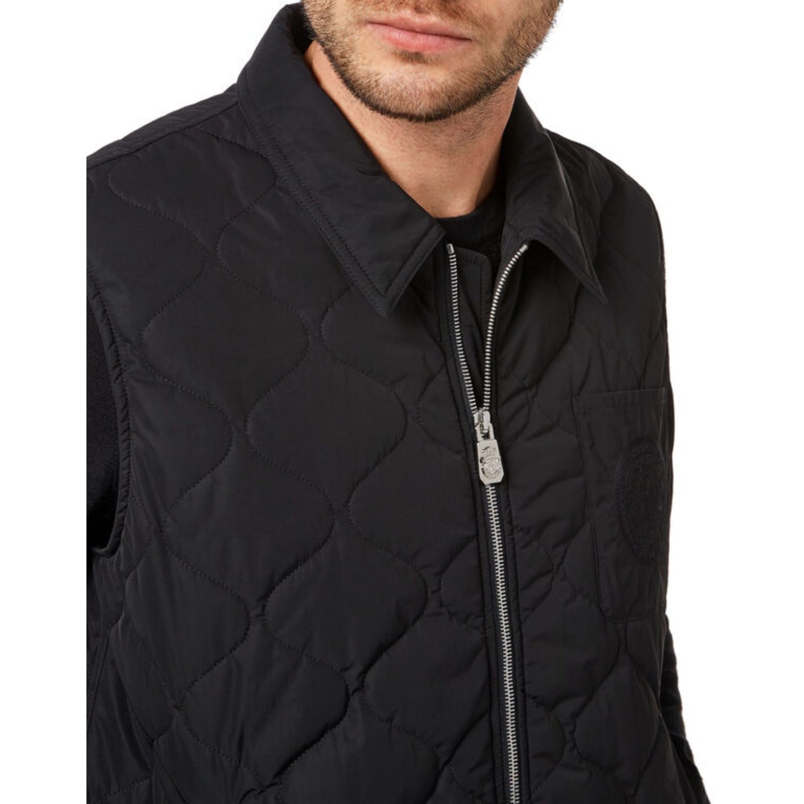 A standout feature of this jacket is the brand’s iconic Lion emblem, proudly displayed as an embroidered patch, symbolizing strength, elegance, and individuality. This striking detail elevates the design, turning a functional garment into a statement piece that reflects Billionaire’s dedication to luxury and craftsmanship. The sleeveless cut provides freedom of movement while adding a contemporary edge, ideal for layering over sweaters, long-sleeve shirts, or hoodies.