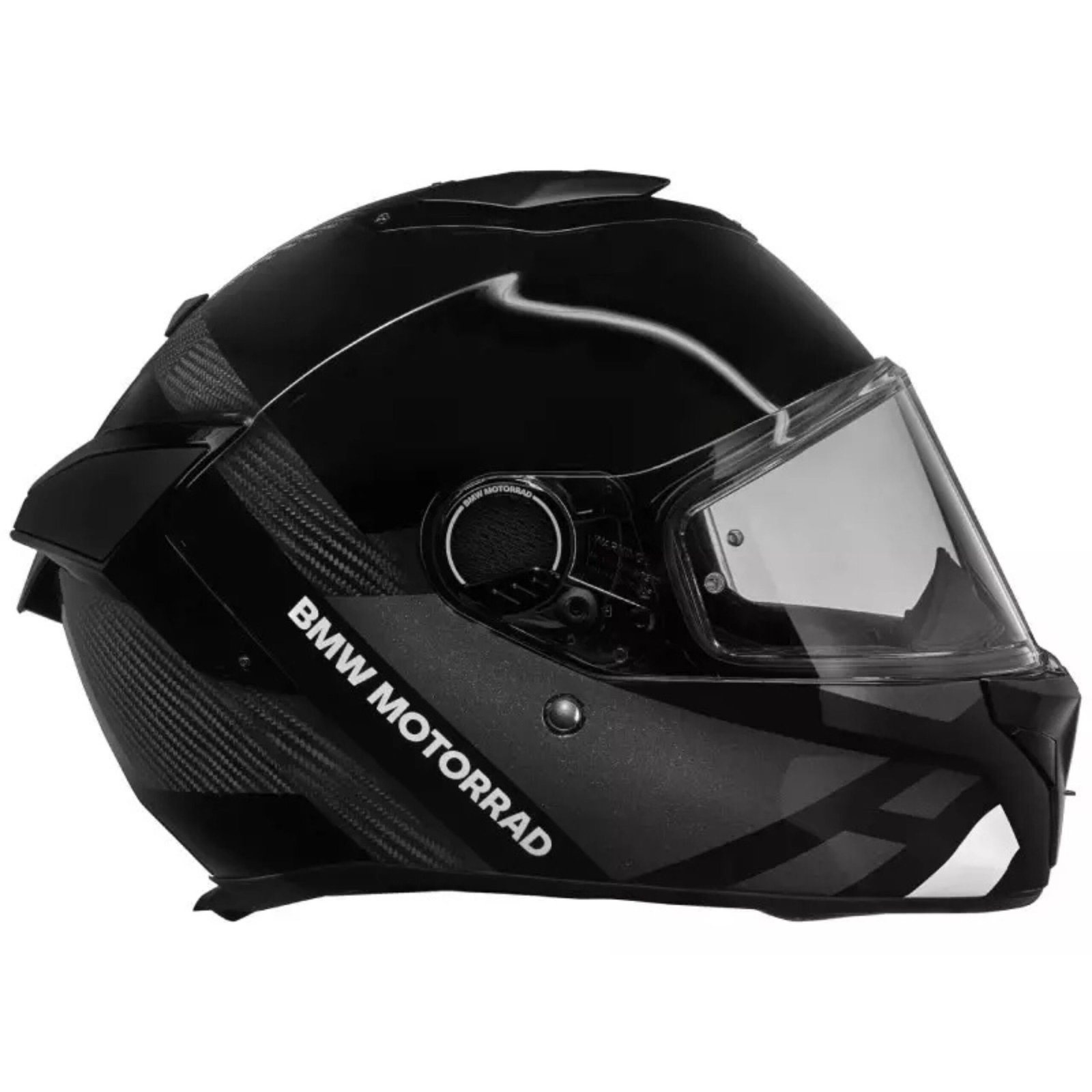 Safety is reinforced with a lightweight yet durable carbon composite shell and an EPS inner layer for impact absorption. The visor system features a secure Soft Close lock and quick-release mechanism. The helmet also includes the BMW Ratchet System for the chin strap and an Emergency Release System for fast liner removal in case of an accident.