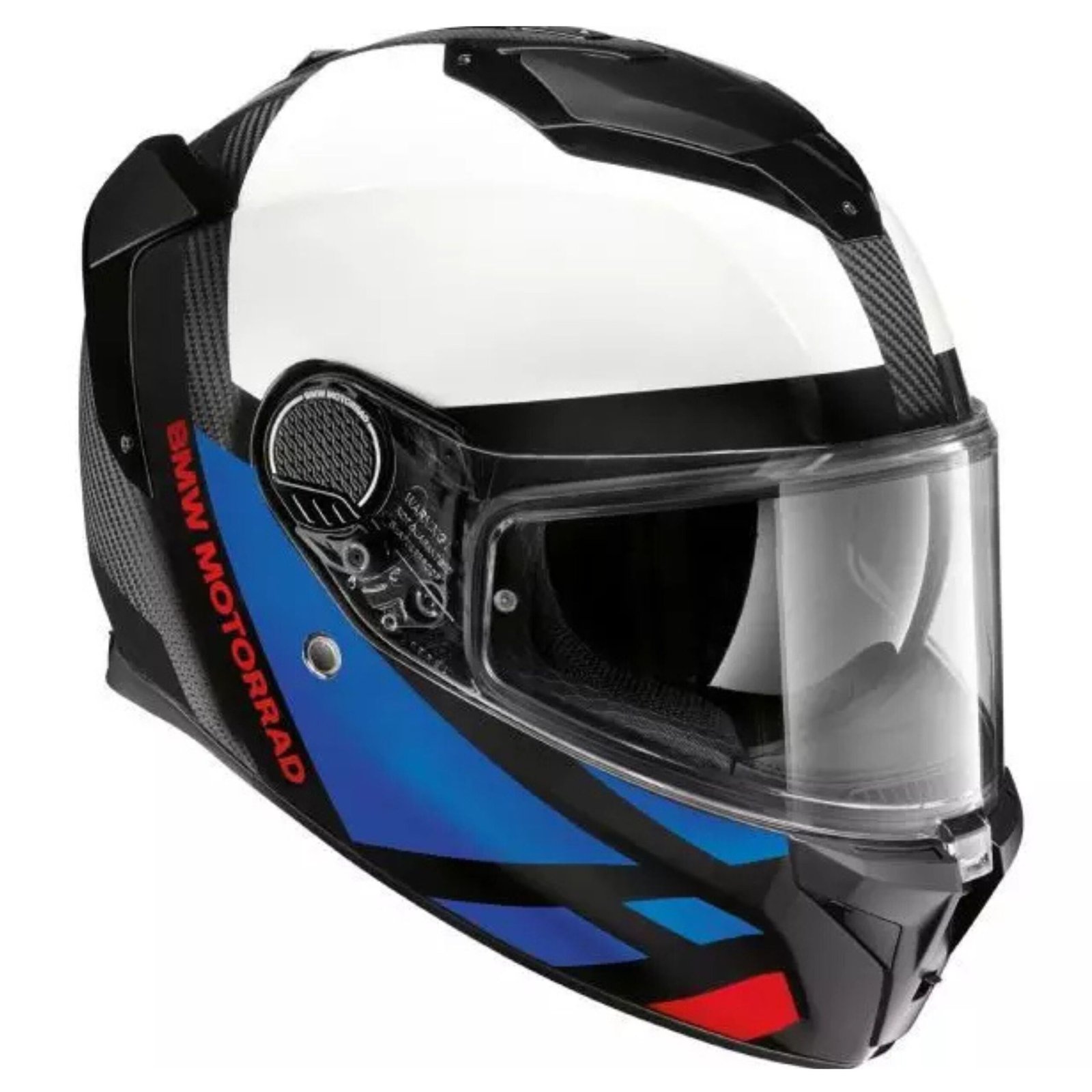 Safety is reinforced with a lightweight yet durable carbon composite shell and an EPS inner layer for impact absorption. The visor system features a secure Soft Close lock and quick-release mechanism. The helmet also includes the BMW Ratchet System for the chin strap and an Emergency Release System for fast liner removal in case of an accident.