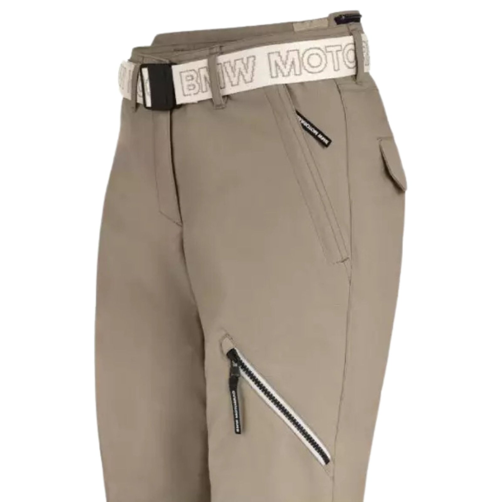 • Storage and Fit: Features include two zippered side pockets, two rear pockets, an elastic fabric belt, and an adjustable leg seam with a zip fastener.