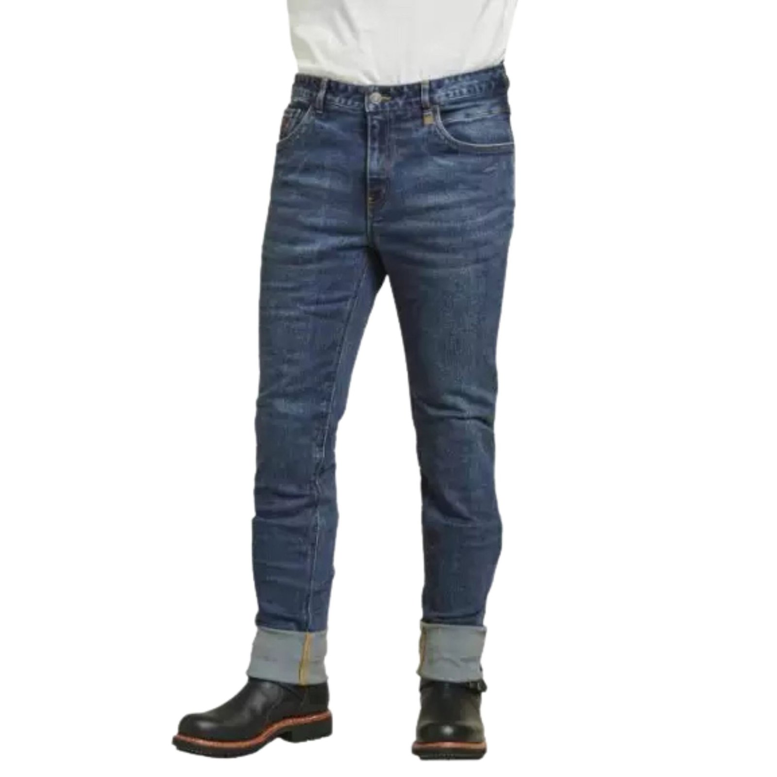 Crafted from Cordura® stretch denim, these jeans offer a classic five-pocket design with a narrow fit, ensuring a sleek appearance without compromising on mobility. The Cordura® fabric enhances durability and abrasion resistance, providing added protection in case of falls.
