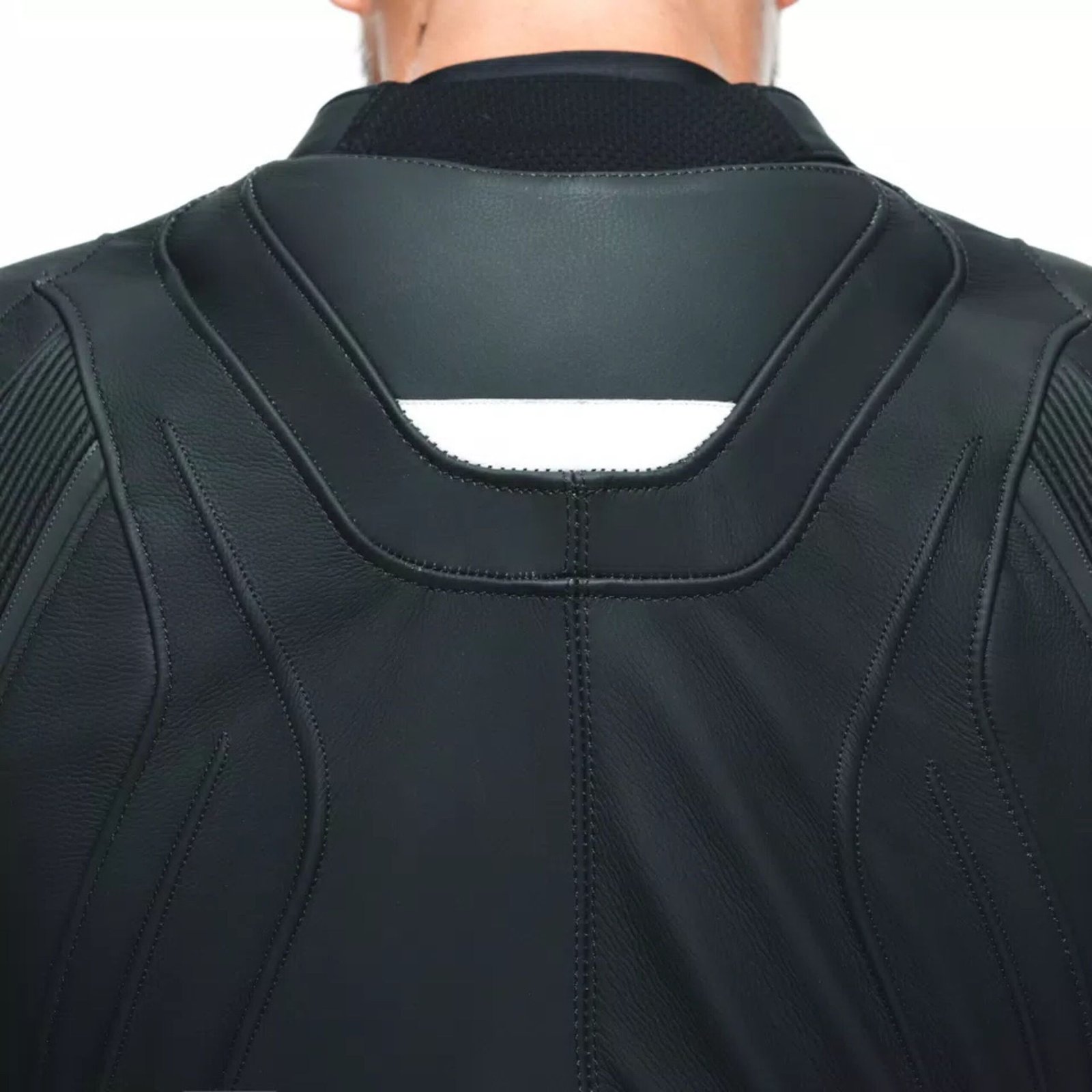 The suit offers maximum protection with CE-certified composite protectors on the knees, elbows, and shoulders. Soft Pro-Shape 2.0 protectors at the hips add comfort without compromising safety. For enhanced impact protection, internal pockets are provided for optional chest protectors. A signature Dainese feature, the Avro 4 includes interchangeable aluminum plates on the shoulders and removable knee sliders, designed to aid smooth sliding in a fall and reduce the risk of tumbling due to asphalt grip. An aerodynamic hump at the back of the neck and shoulders improves airflow and high-speed performance.