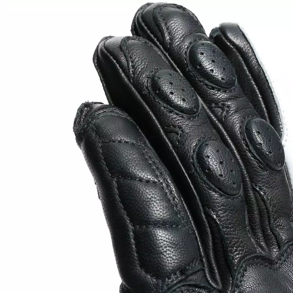 At the core of the Impeto gloves is Dainese’s commitment to safety. They feature hard polyurethane knuckle protectors that shield the hands from high-impact areas, while additional reinforcements on the palm and side of the hand enhance slide resistance during a fall. Strategically placed stretch inserts improve flexibility, ensuring natural hand movement without compromising protection. The fingers are pre-curved to reduce fatigue during long rides and are equipped with perforations for improved airflow, helping to keep your hands cool and dry.