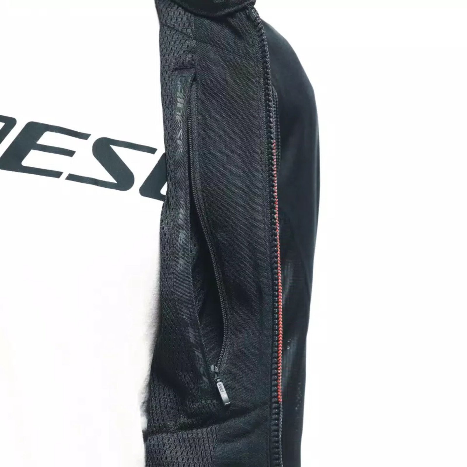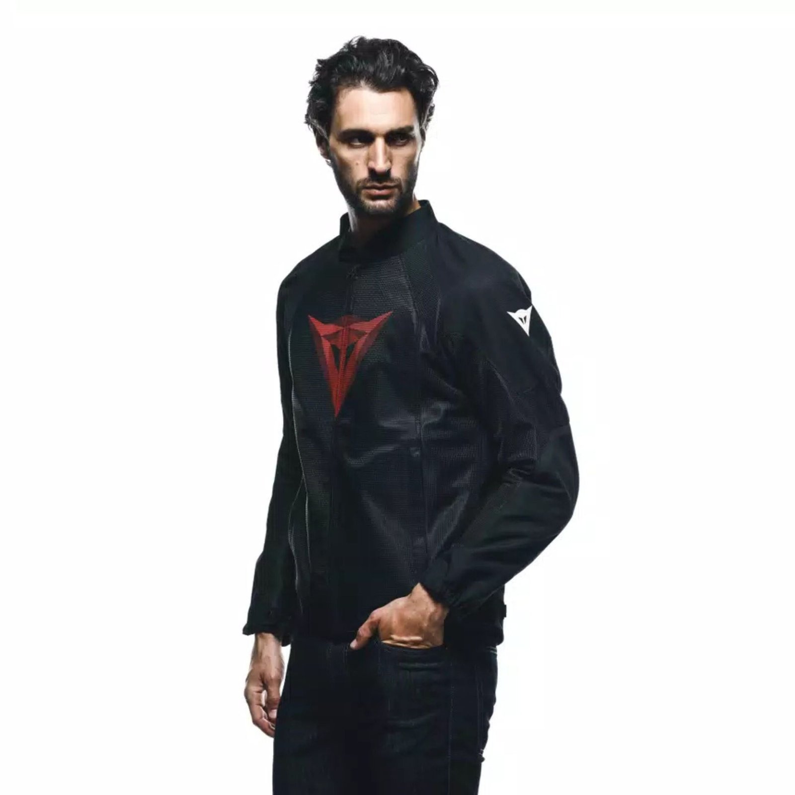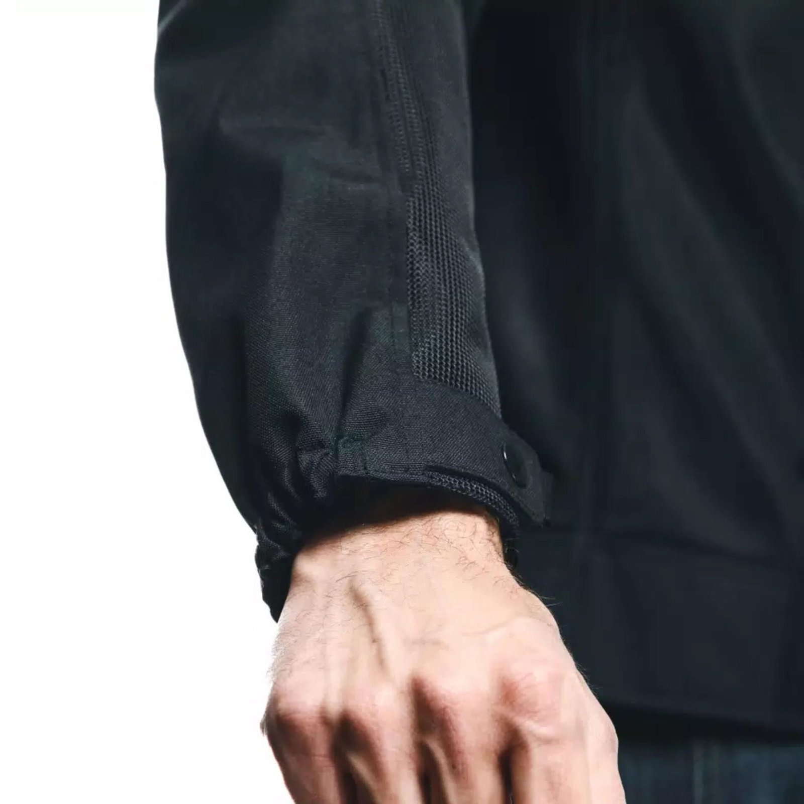 The ergonomic fit includes adjustable waist straps and cuffs for a snug, secure fit, and the jacket-to-pants connection loop ensures compatibility with Dainese riding pants for added stability and safety. Storage is handled by two external zippered pockets and a waterproof internal pocket, keeping valuables safe and dry.