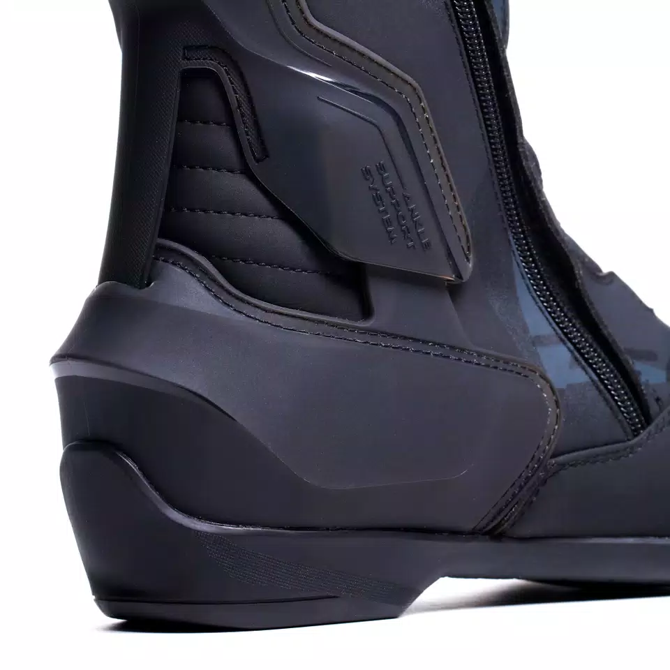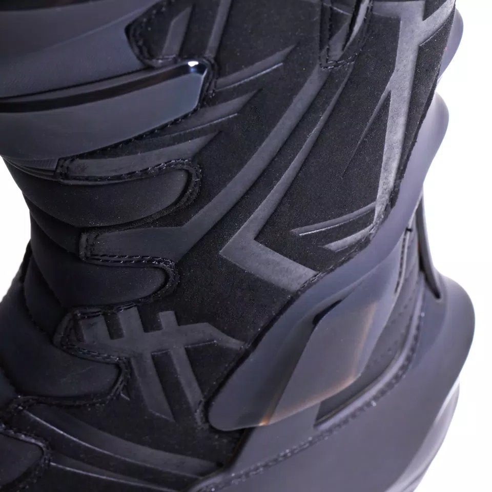 To further support natural mobility, the boots integrate the advanced TCS® (Torsion Control System). This unique joint mechanism is engineered to follow the ankle’s natural range of motion, guiding it safely through movement while preventing excessive twisting, hyperflexion, or hyperextension. As a result, the rider gains enhanced stability and reduced risk of ankle injuries during aggressive riding or sudden movements.