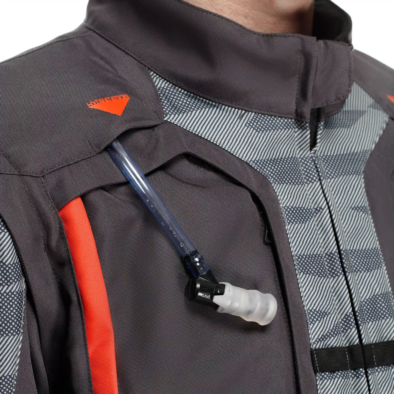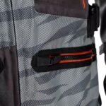 Functionality is a major highlight, with multiple storage options including two front zippered pockets, a sleeve pocket, and a large rear cargo pocket—perfect for storing gloves, maps, or even the detached sleeves. An internal waterproof pocket provides added protection for valuables such as phones and wallets, while a hydration bladder-ready back pocket ensures hydration on long rides.