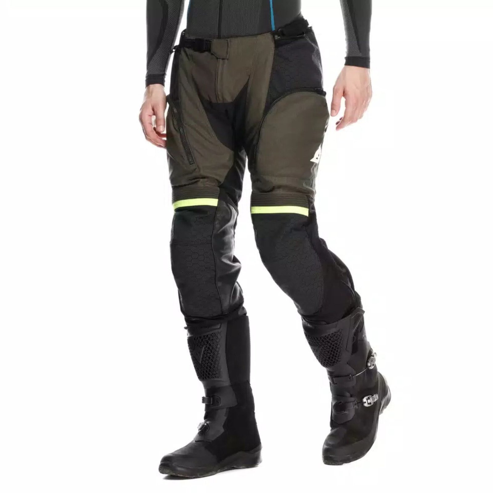 Built with a modular construction, they adapt easily to changing weather. The removable Dainese Absøluteshell™ waterproof membrane can be worn over the pants to shield against rain or inside as a thermal layer for cooler temperatures. For hot conditions, breathable mesh panels provide ventilation when the side zippers are opened, and the pocket covers are folded away.