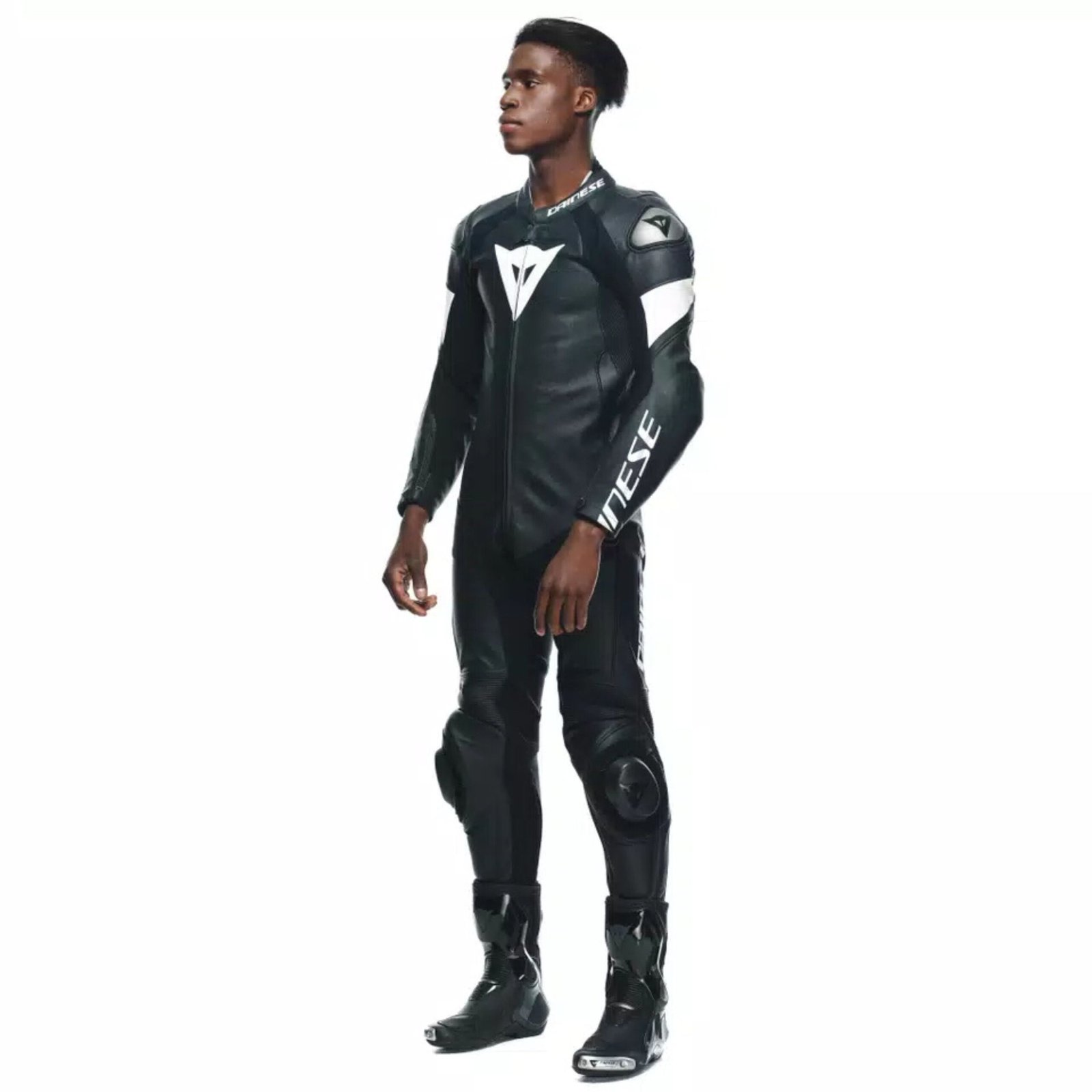 Designed in Dainese’s signature slim silhouette, the suit provides a close, athletic cut without sacrificing comfort or mobility. S1 elastic fabric inserts at key areas—inner arms, groin, and backs of the legs—allow natural, unrestricted movement. Additionally, biaxial stretch panels on the back, plus stretch zones on the knees and shoulder blades, ensure full skin coverage and maximum flexibility, allowing the suit to adapt to the rider’s every motion on the track.