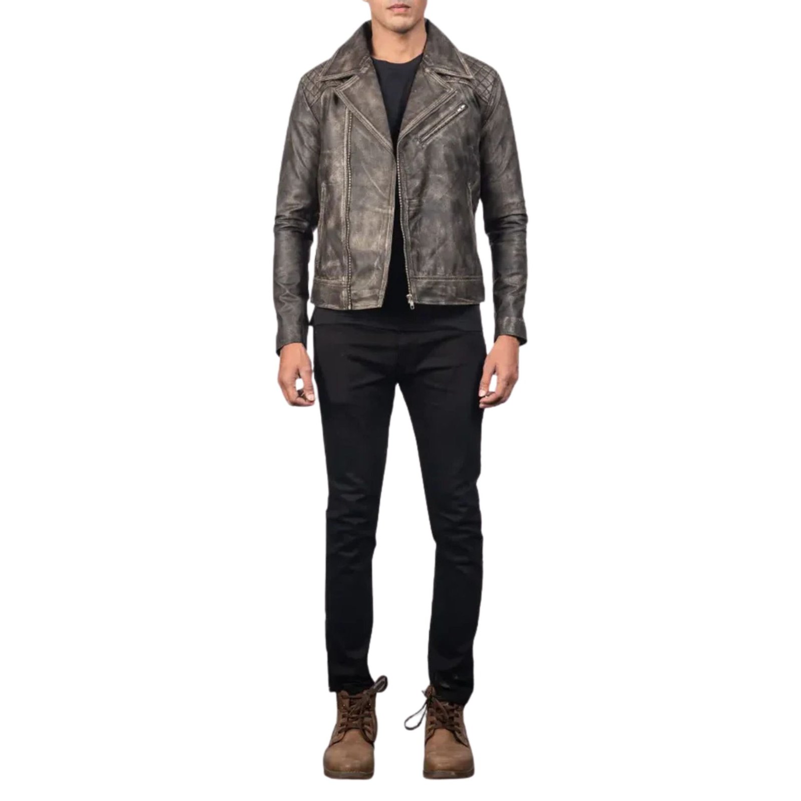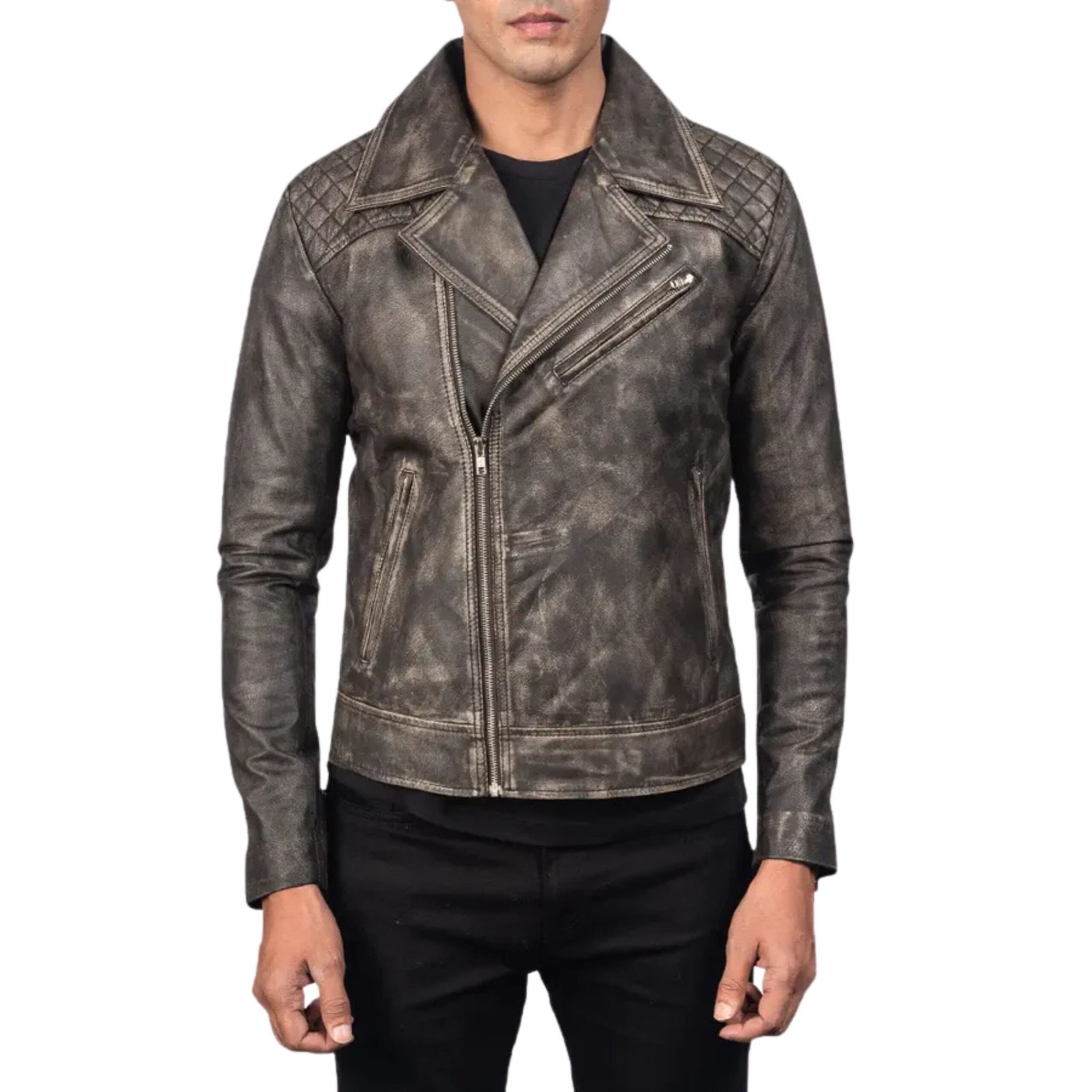 DANNY QUILTED BROWN LEATHER BIKER JACKET