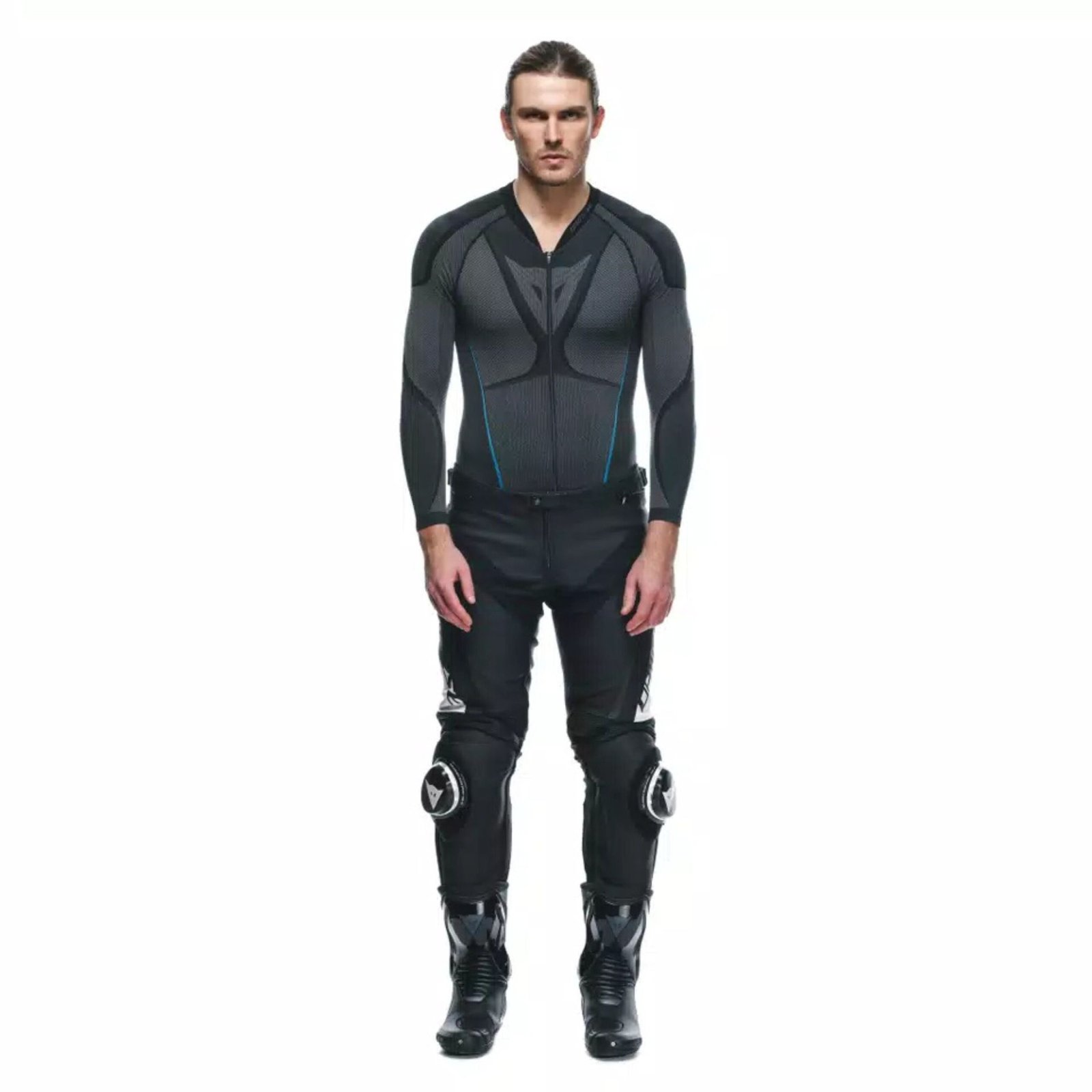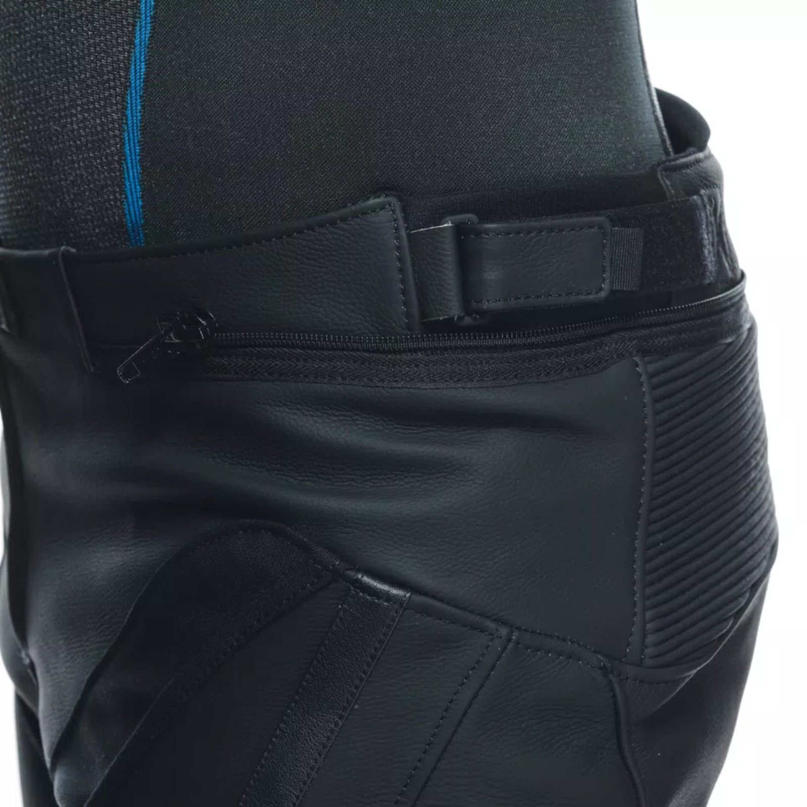 The Dainese Delta 4Men Leather motorcycle pants are crafted from premium Tutu cowhide leather and feature stretchable S1 fabric inserts, perfectly matching the Racing 4 and Avro 5 jackets. These pants seamlessly connect to the jackets via a convenient zipper, offering riders a unified and stylish look.