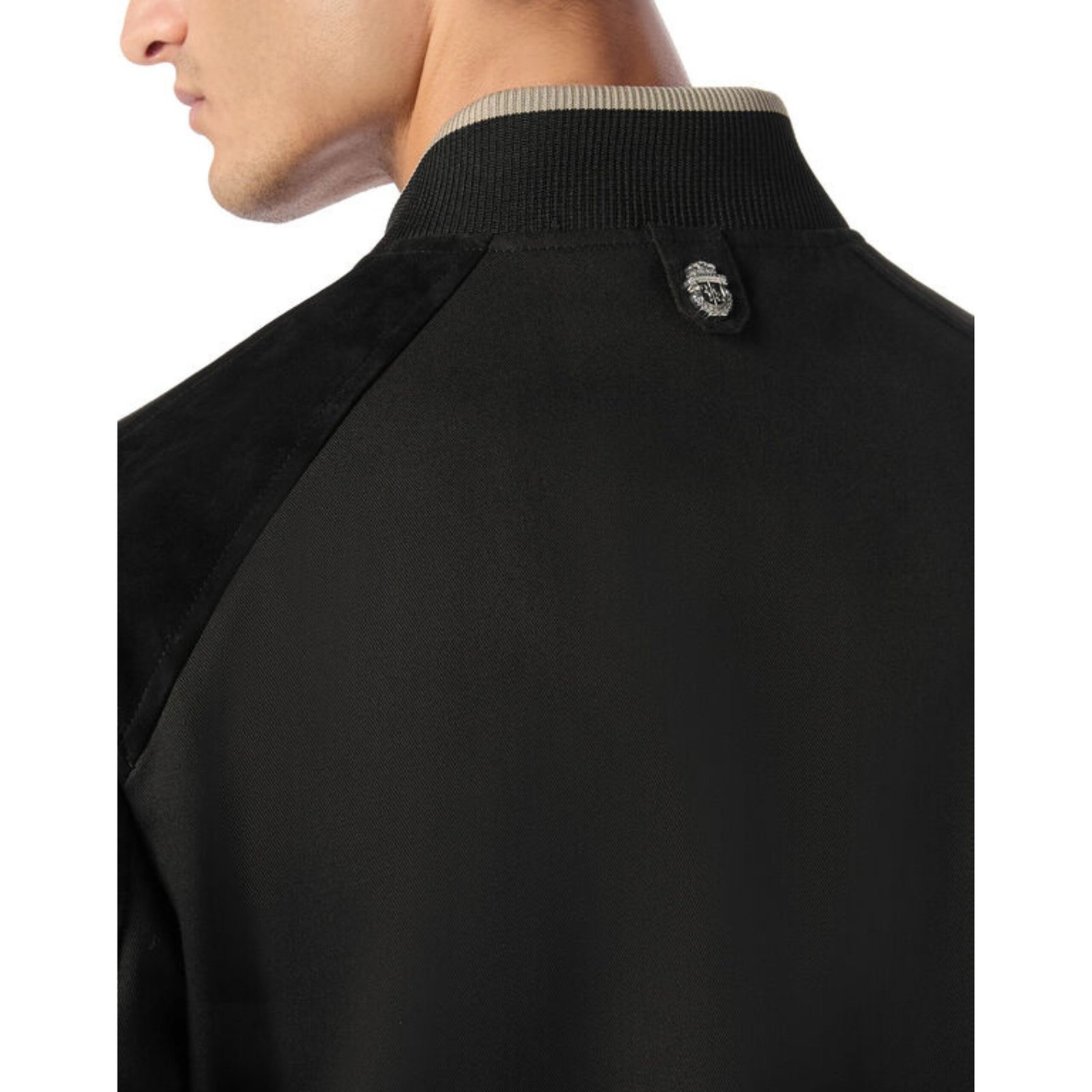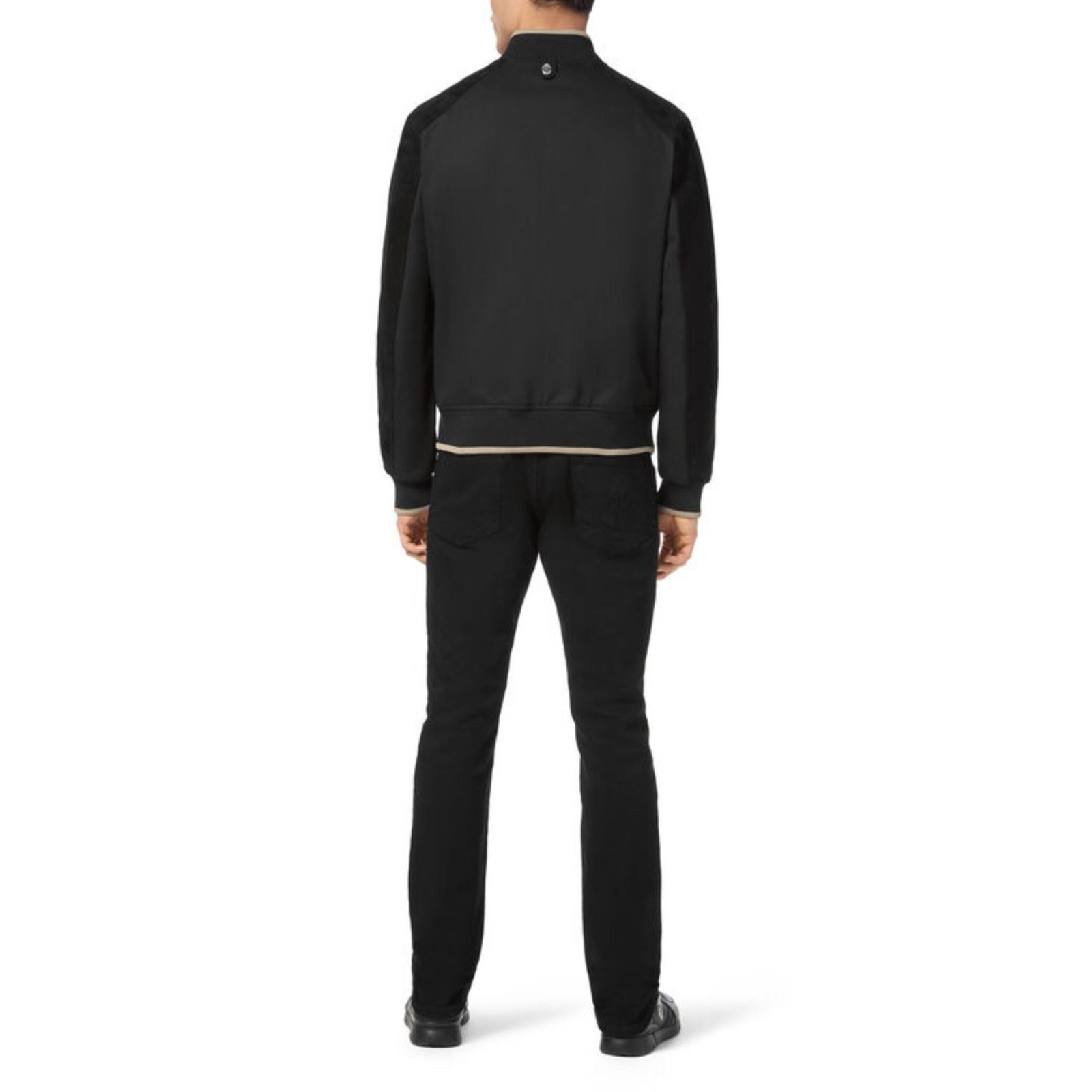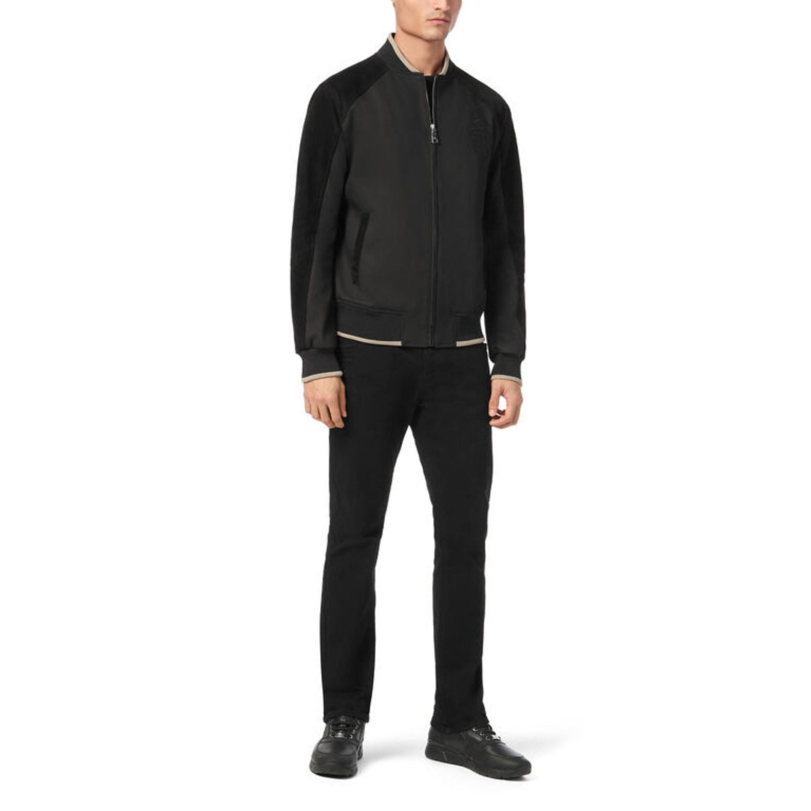 The jacket’s outer shell is crafted from luxurious cotton duchess fabric, offering a smooth, structured finish that exudes sophistication while maintaining comfort and flexibility. Subtle suede accents add a touch of texture and richness, creating a layered, multidimensional aesthetic that sets this bomber apart from conventional sporty outerwear.