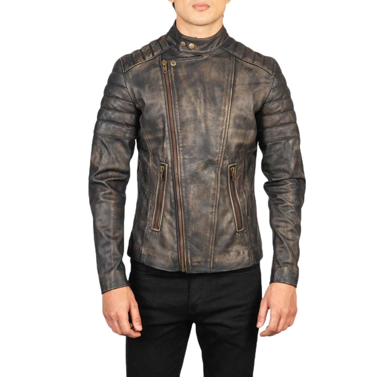 FAISOR DISTRESSED BROWN LEATHER BIKER JACKET