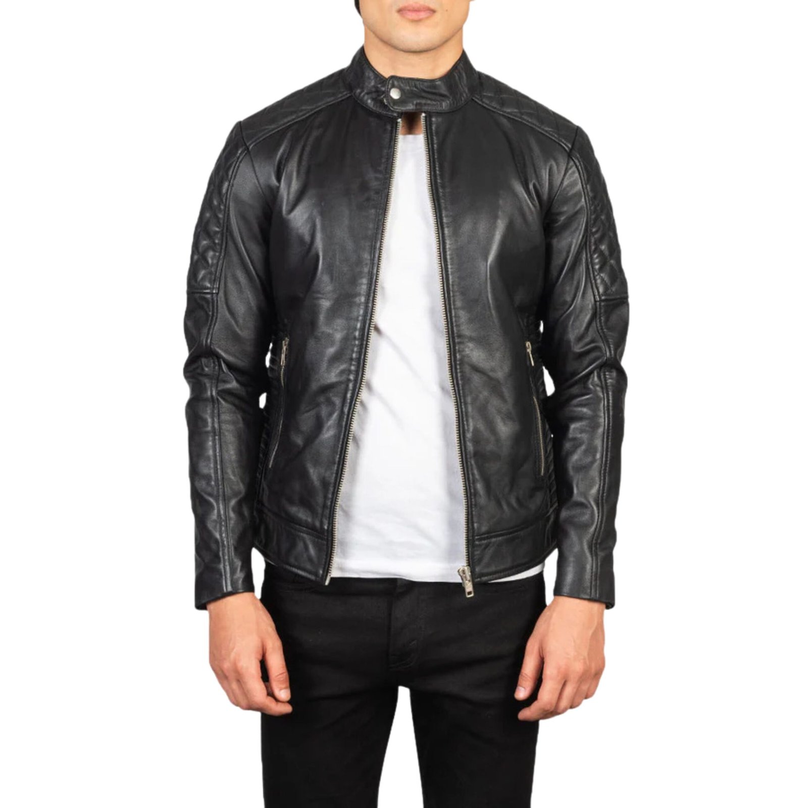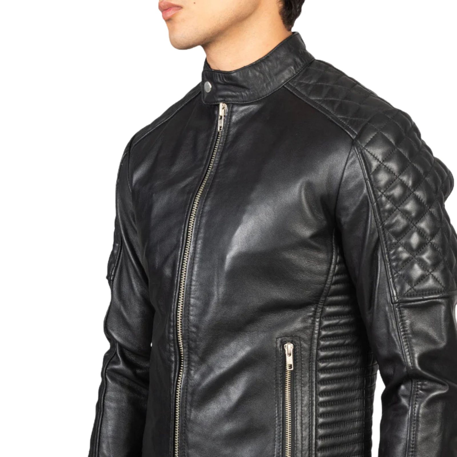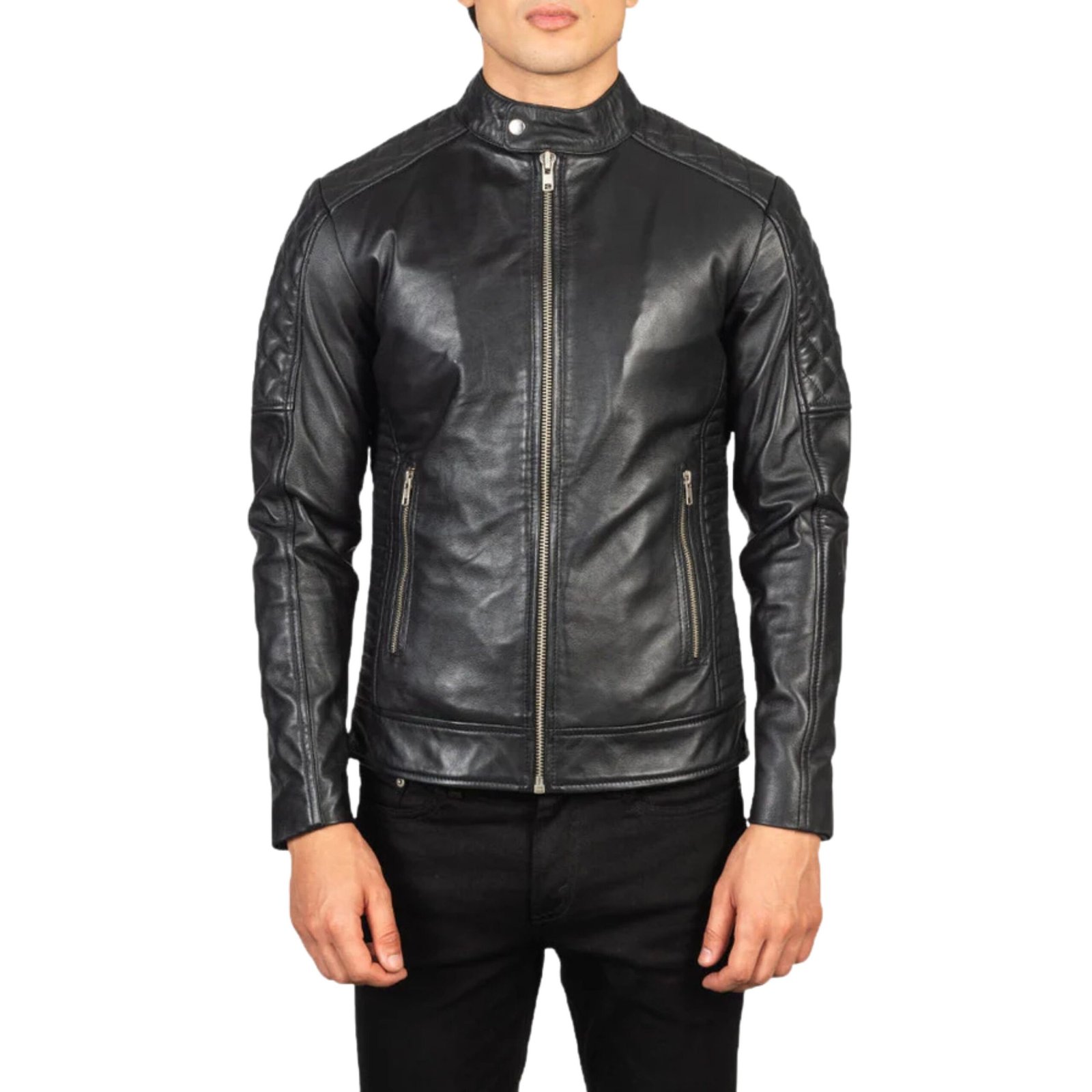 FERNANDO QUILTED BLACK LEATHER BIKER JACKET