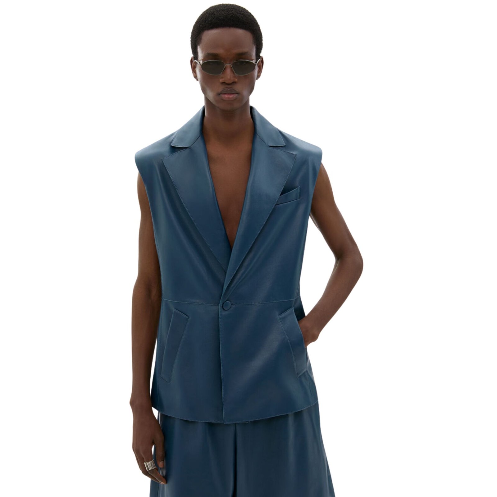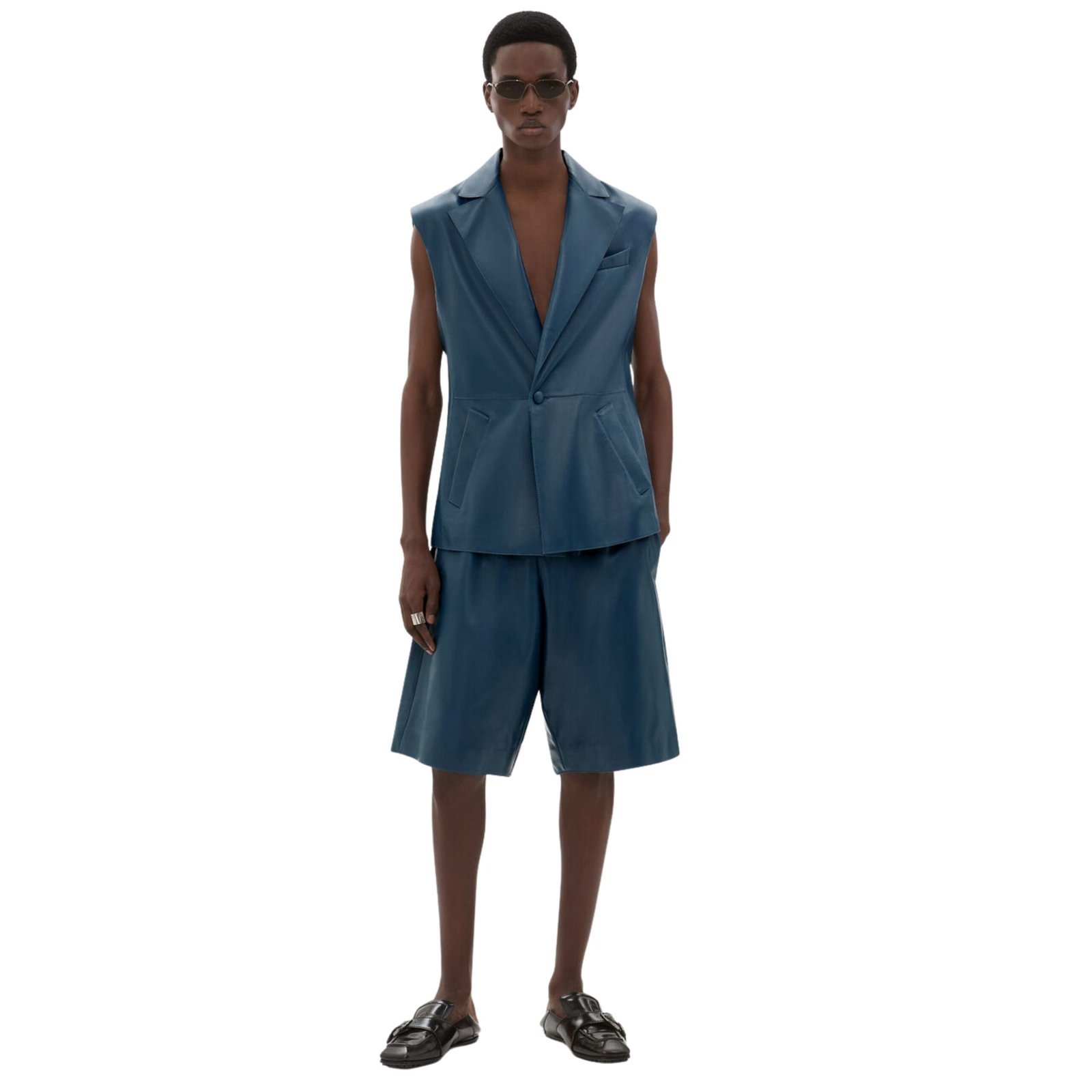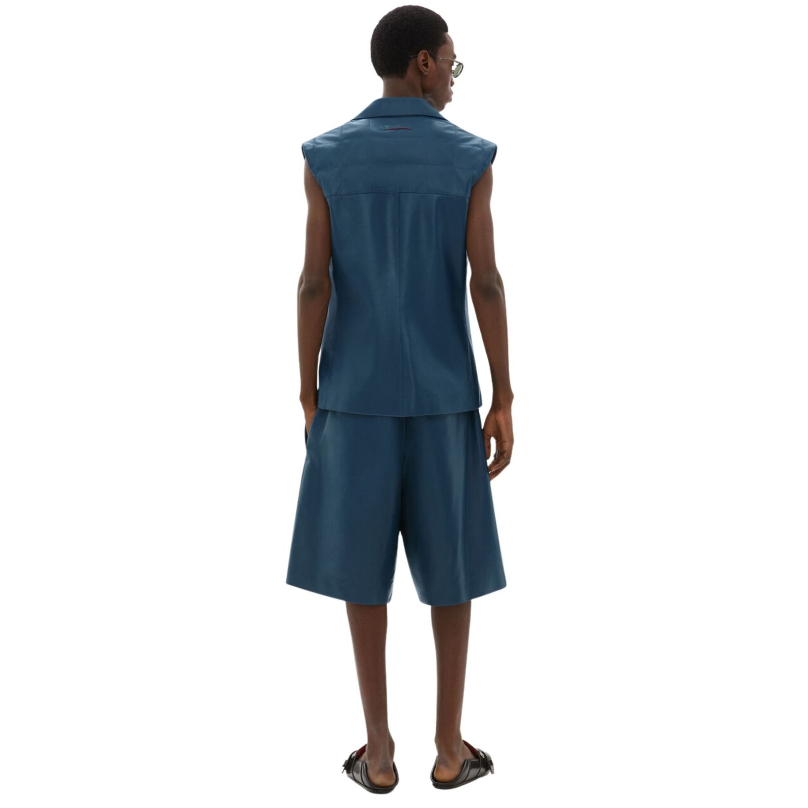 Beyond aesthetics, this gilet is crafted with a focus on durability and longevity. Made entirely from natural nappa leather, it offers a supple and luxurious touch while maintaining strength and resilience. The semi-gloss finish enhances the leather’s natural grain, giving the garment a refined shine that changes character subtly over time, reflecting the wearer’s lifestyle and usage.