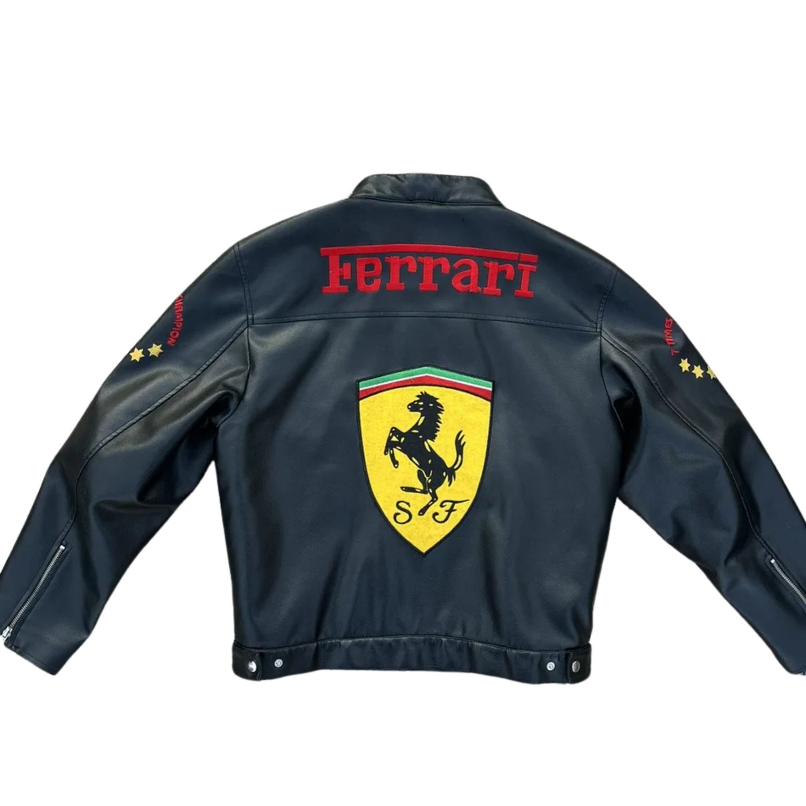 FERRARI RACING BLACK MOTORCYCLE RIDING GEAR COWHIDE LEATHER BIKER JACKET