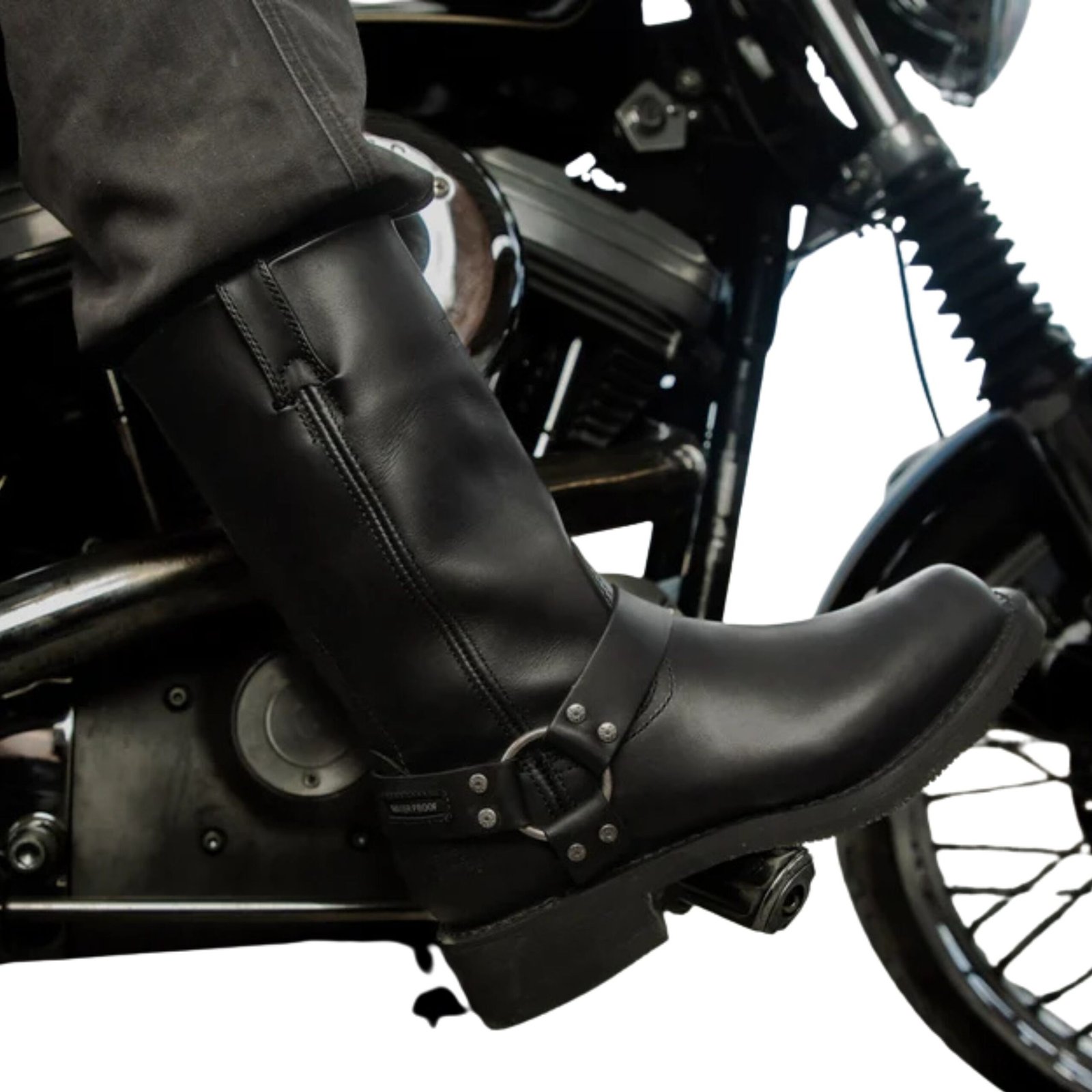 Whether you’re cruising on your motorcycle, navigating city streets, or exploring rugged terrain, the Hustin Waterproof Leather Riding Boots are engineered to meet the demands of riders without compromising on style. Their sleek silhouette, combined with functional detailing, makes them versatile enough to pair with riding gear or casual outfits.