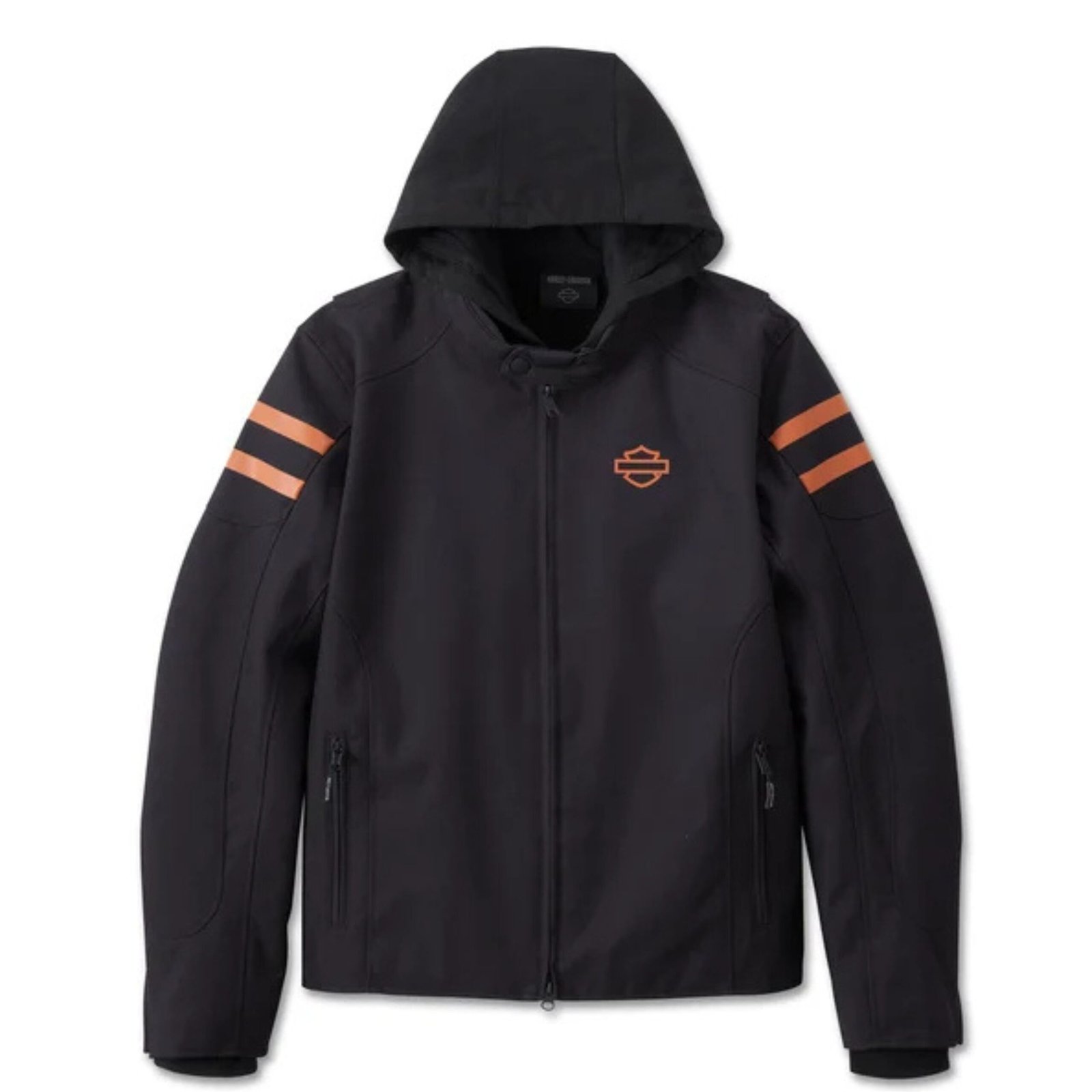 The Ovation 3-in-1 Textile Riding Jacket is built for riders who value versatility, comfort, and a touch of iconic Harley-Davidson style. Designed to adapt to changing conditions, it pairs a durable heavyweight nylon outer shell with a removable hoodie made from a soft cotton and polyester French terry blend. Worn together, they deliver superior warmth; worn separately, they offer two distinct looks for on- and off-bike wear.