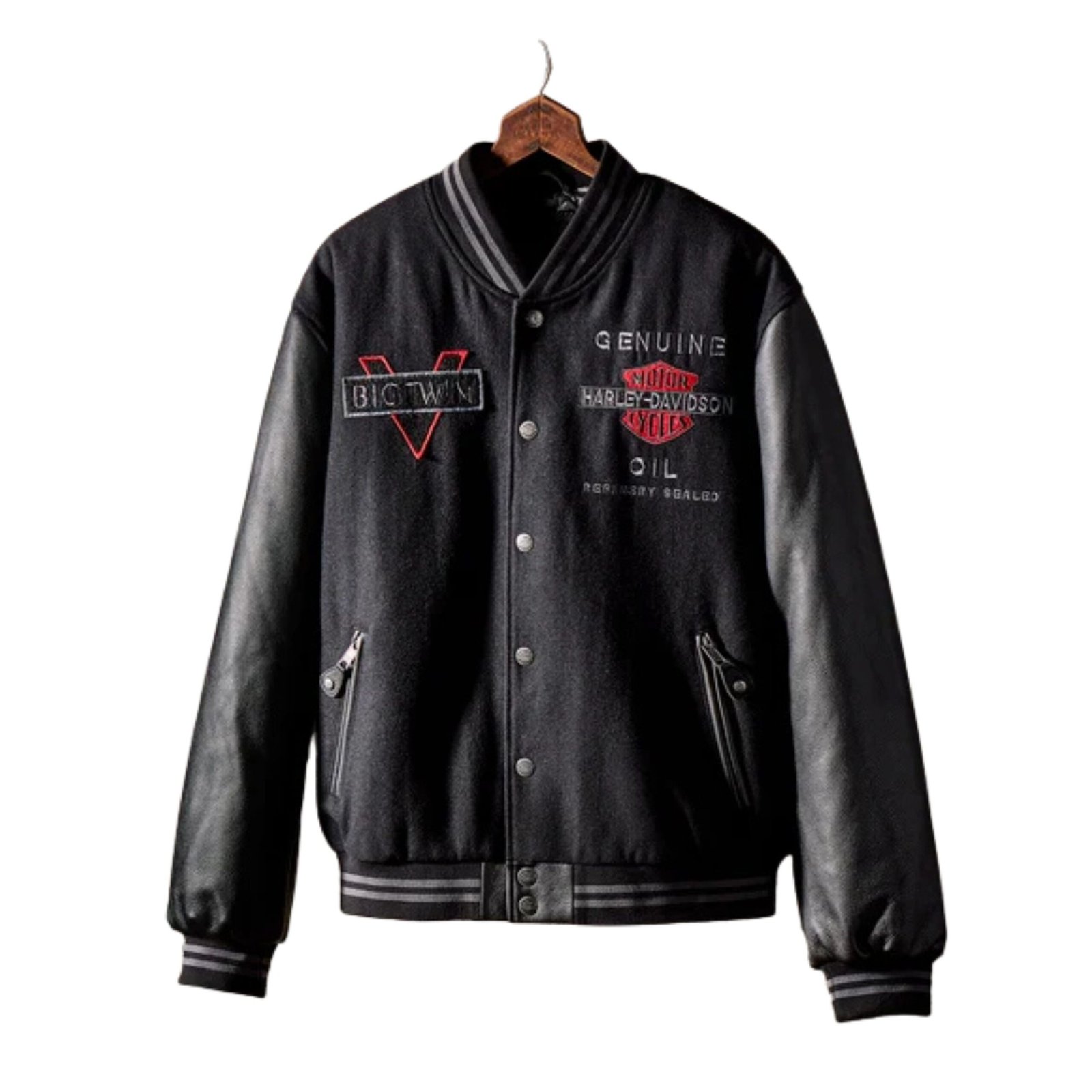 Whether cruising city streets or taking long highway rides, the V-Twin Varsity Leather Jacket blends style, comfort, and practical features. Its high-quality construction, secure storage, and warm insulation make it as functional as it is iconic. With its distinctive graphics and limited availability, this jacket is a collector’s dream and a standout piece in any rider’s wardrobe. Order yours while supplies last and celebrate Harley-Davidson’s timeless legacy with every ride.