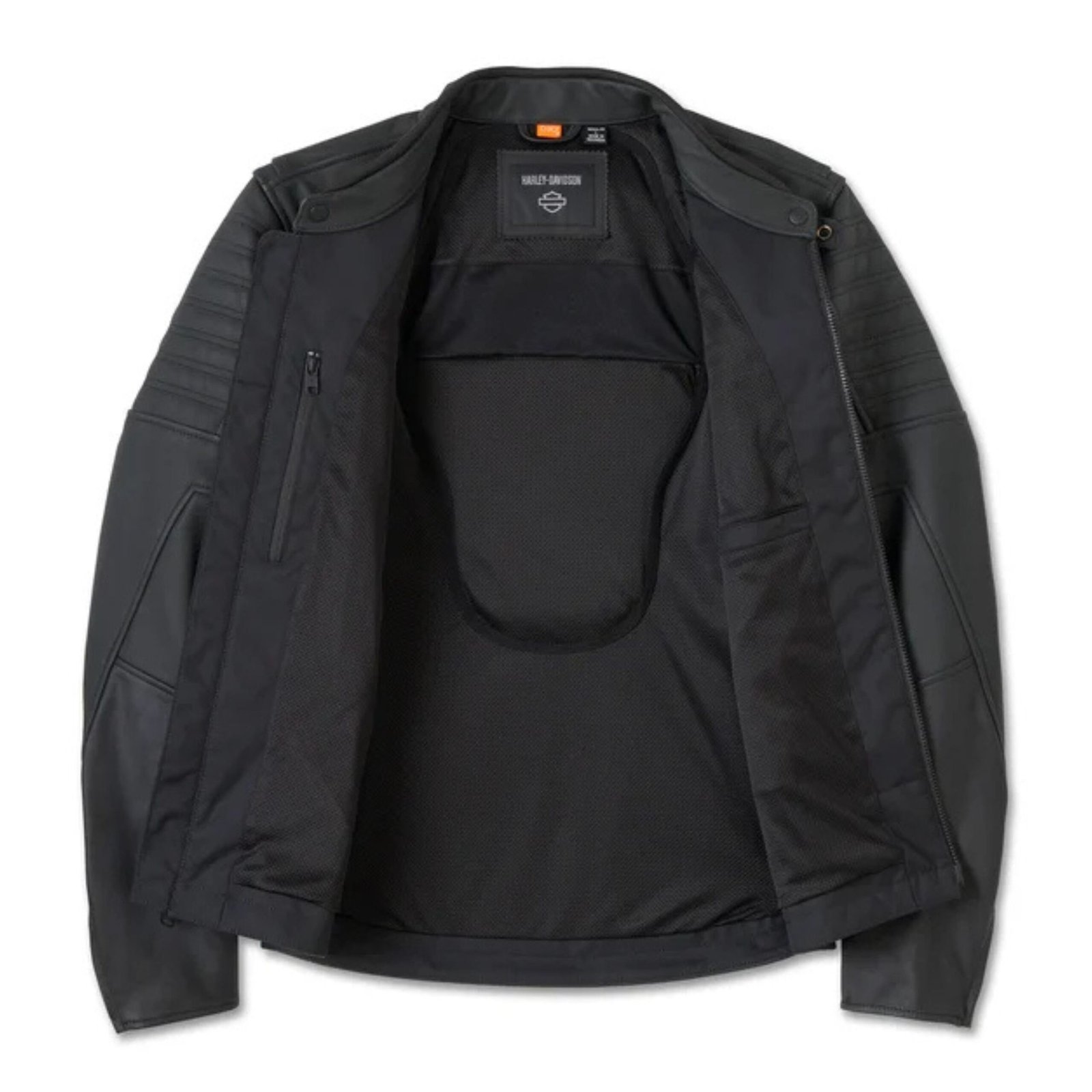 Airflow is intelligently managed through underarm zippered vents and zippered back exhaust vents, keeping riders cool even during warm-weather rides. Reflective piping and 3Mâ„¢ Scotchliteâ„¢ material enhance visibility, while quilted padding on the upper sleeves and precision leather piecing add both protection and style. Zippered hand-warmer and chest pockets, along with an interior stash pocket and interior zipper pocket, provide secure storage for essentials without compromising the sleek profile.