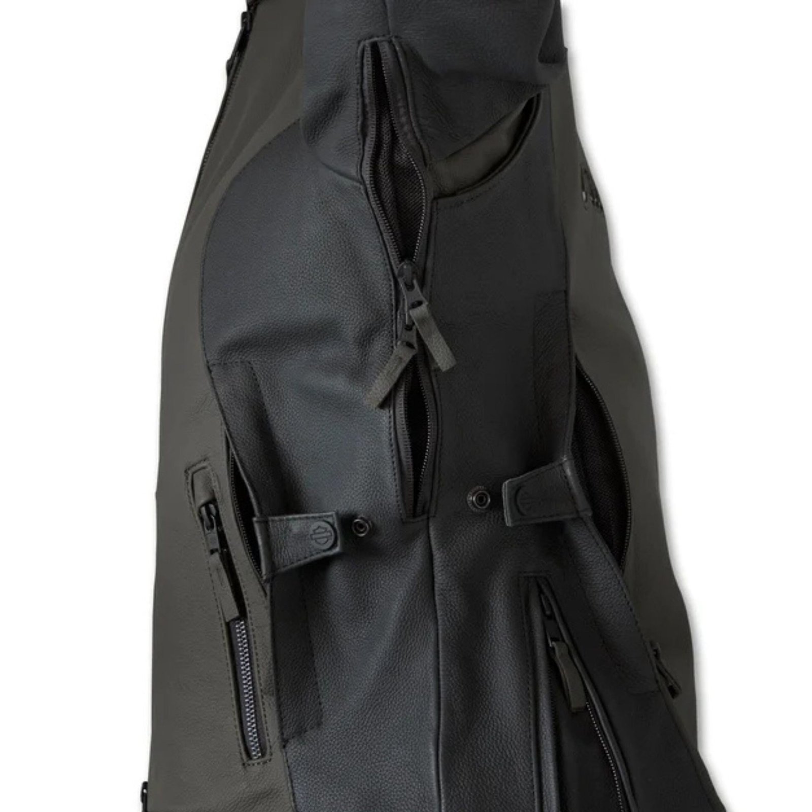 The Gallun 2.0 H-D Triple Vent System™ Leather Jacket is a reimagined version of a rider-favorite style, blending classic Harley-Davidson® design with modern functionality and performance. Crafted from heavyweight Monaco cow leather, this men’s motorcycle jacket offers both durability and a premium look, while the innovative Triple Vent System™ ensures superior airflow to keep you cool and comfortable during your rides. Strategically placed vents allow air to circulate efficiently, making it ideal for long-distance touring or spirited rides on warm days.