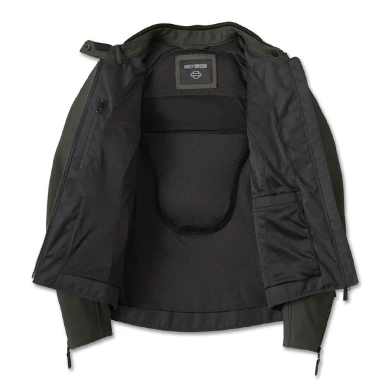 This jacket also enhances visibility with inset reflective graphics, ensuring you’re seen even in low-light conditions, while zippered back hem releases provide added mobility and comfort when seated on the bike. The updated colorblock styling delivers a sleek, contemporary look that’s understated on the front and accented with scripted branding on the back, giving the jacket a polished, elevated Harley-Davidson® aesthetic.
