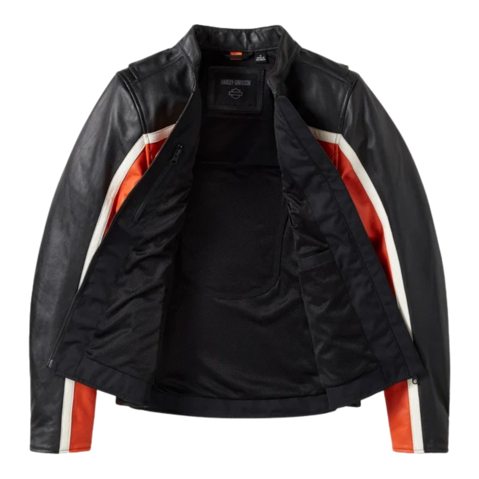 Function meets fashion with multiple pockets for practical storage, including zippered hand-warmer pockets, an interior stash pocket, and an interior zippered pocket. The split Mandarin collar and contrast piecing deliver a refined, contemporary look, while embroidered graphics add a bold, branded touch that aligns with Harley-Davidson’s signature aesthetic.