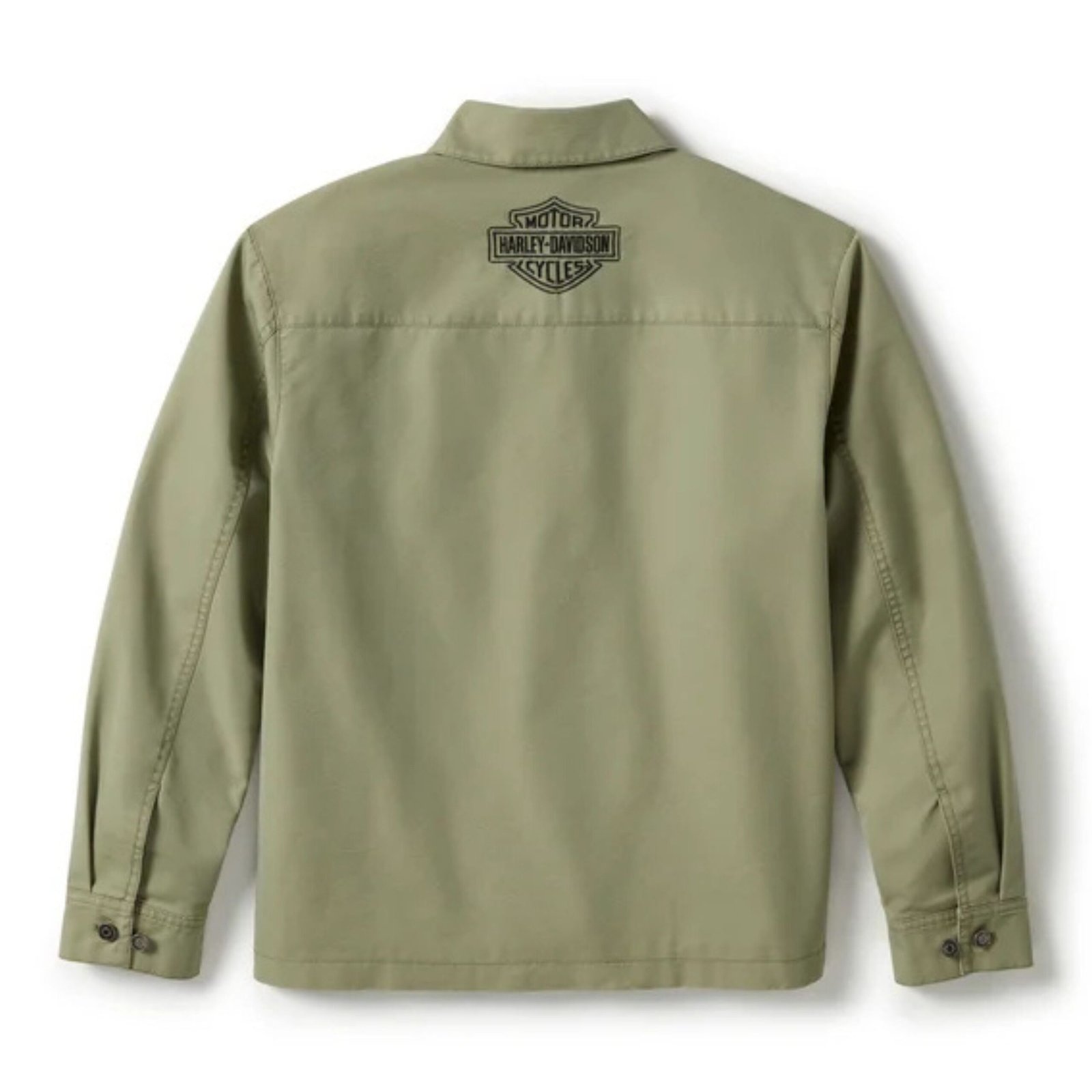 The Heritage Twill Utility Jacket delivers a perfect blend of timeless Harley-Davidson style, functional design, and lasting comfort. Crafted from a durable midweight cotton/polyester twill blend, this women’s jacket is built to withstand regular wear while maintaining a soft, easy-to-layer feel. The garment-dyed finish enhances its rich Oil Green color, giving it a slightly worn-in, vintage vibe that pairs effortlessly with your favorite riding or casual outfits.