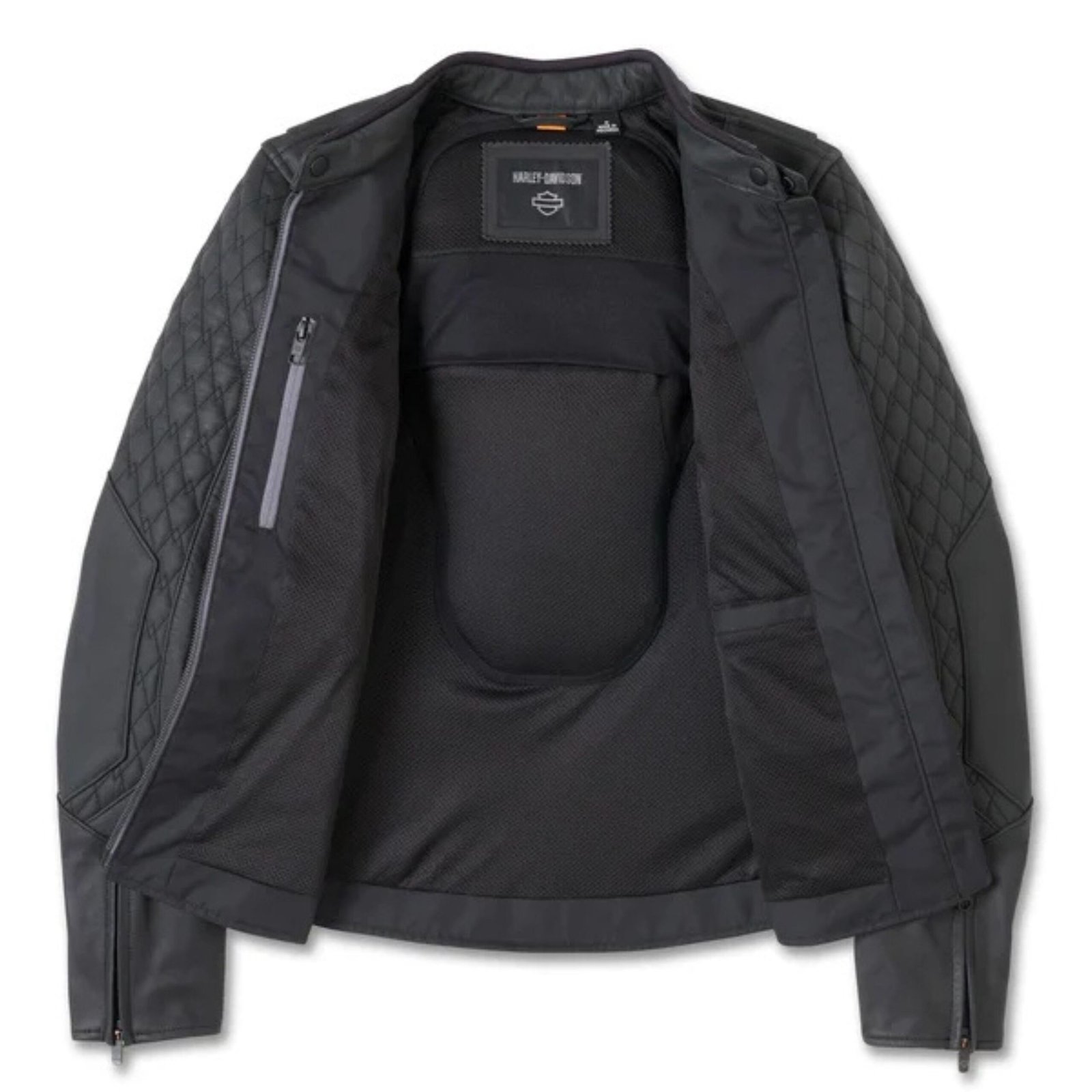Functionality meets timeless style with carefully placed design elements. Quilted leather piecing on the upper sleeves and side panels adds dimension, while subtle padded details elevate the look. The graphics make a bold statement, featuring a combination of reflective appliqué, satin stitch embroidery, and direct embroidery. Most notable is the iconic Willie G Skull emblazoned on the back, a design that has become a rider favorite since its creation.
