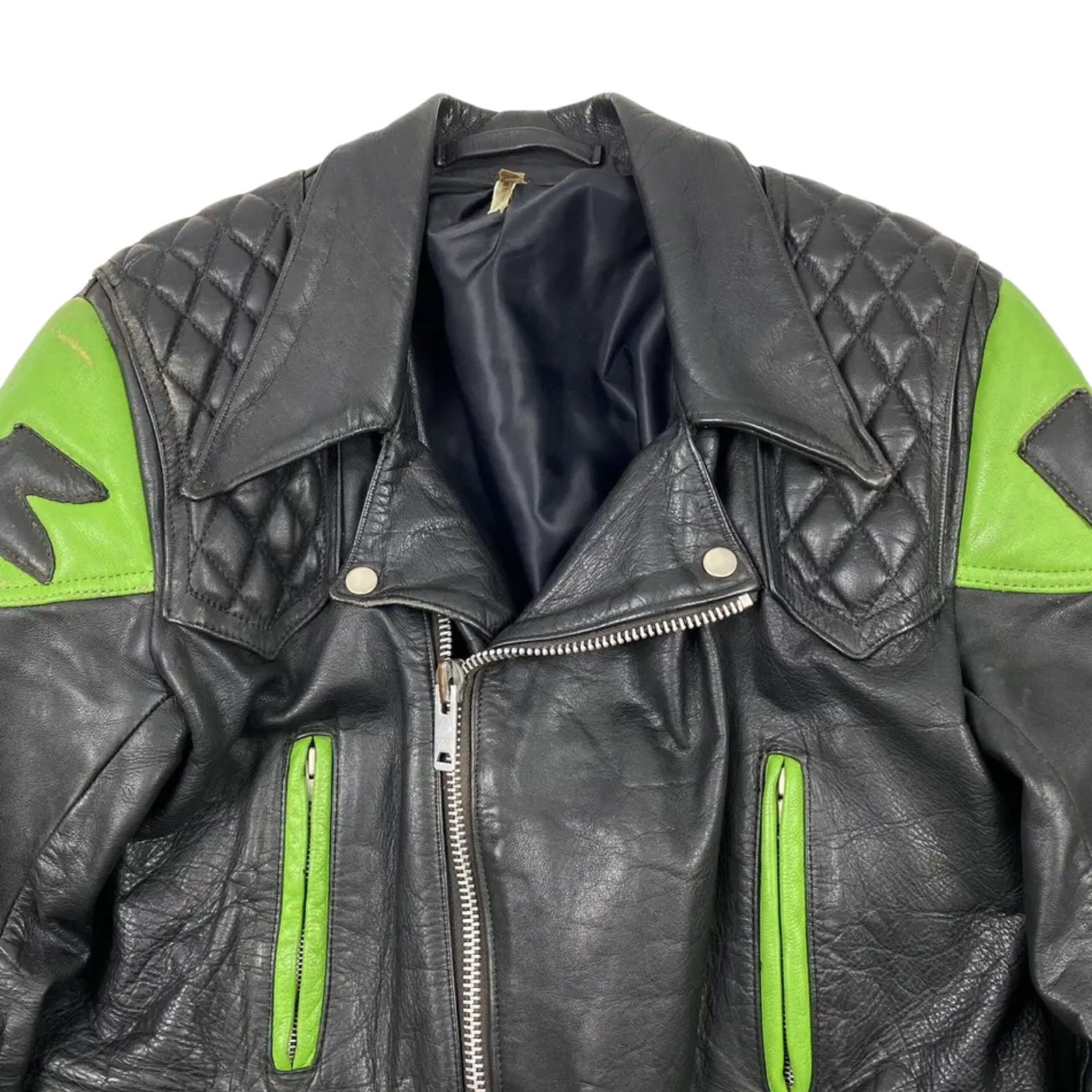 NARSON KAWASAKI BLACK MOTORCYCLE LEATHER BIKER JACKET