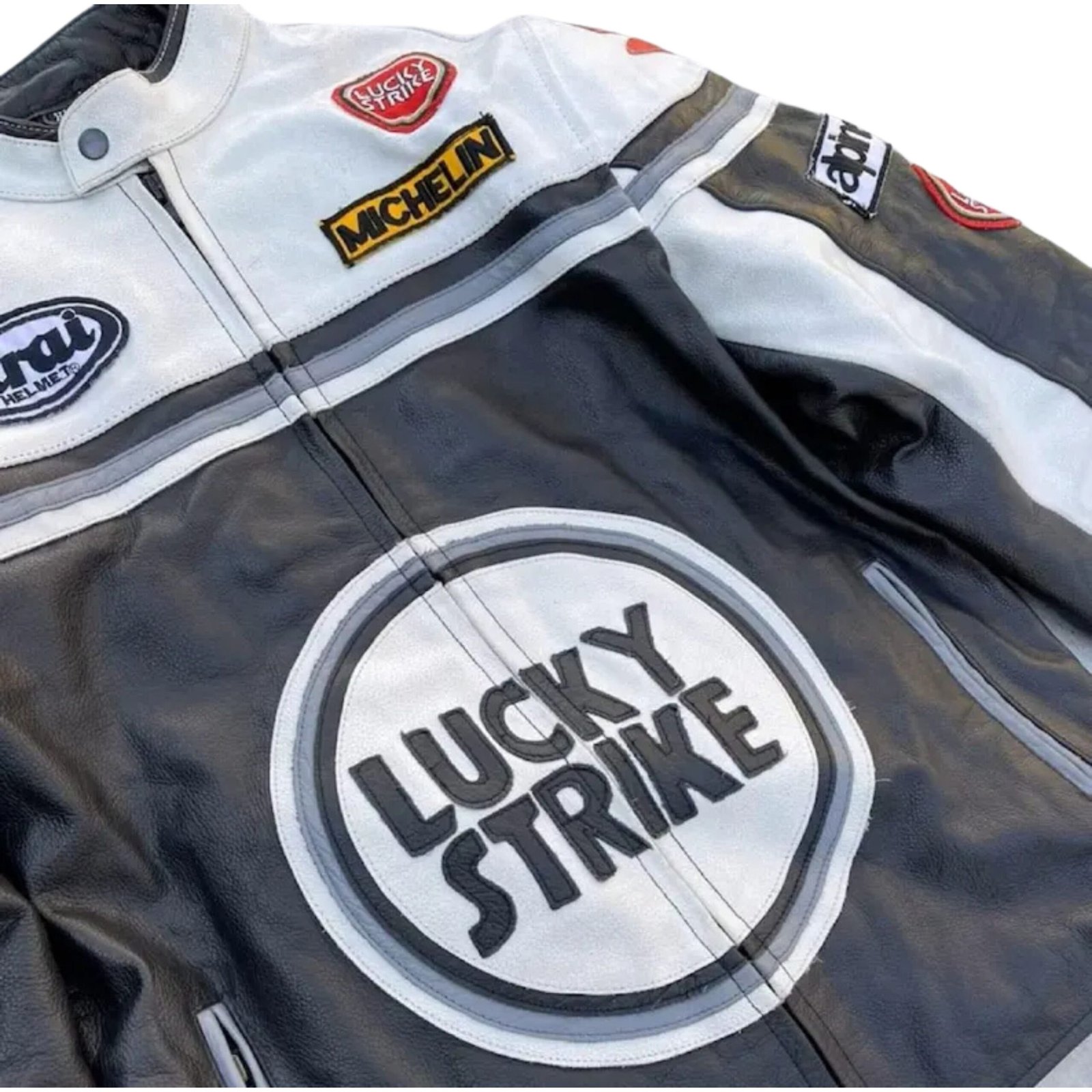 NARSON LUCKY STRIKE BIKER STREETWEAR FASHION MOTORCYCLE COWHIDE LEATHER RACING JACKET
