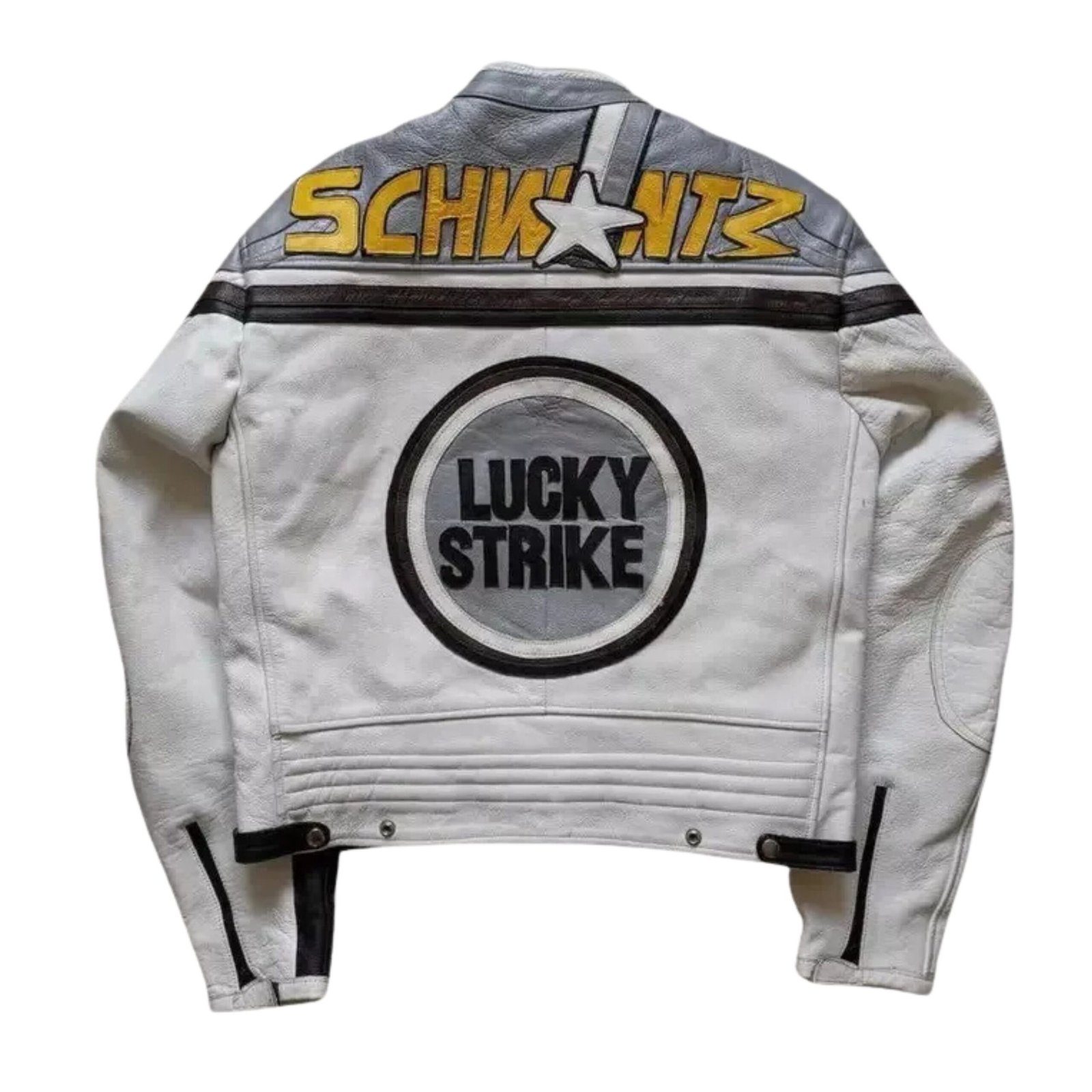 Functionality and practicality are seamlessly blended into the design. Multiple secure pockets provide ample storage for essentials, while the tailored fit and racing-inspired silhouette ensure ease of movement without sacrificing style. Every detail, from the bold Lucky Strike branding to the carefully crafted finishes, reinforces its identity as both a protective riding companion and a fashion statement.