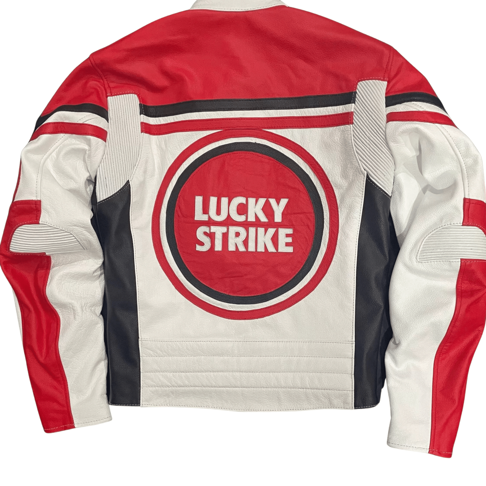 A true blend of functionality and fashion, the Lucky Strike Streetwear Biker Jacket comes equipped with secure pockets for essentials, a tailored silhouette, and racing-inspired design accents. Its bold branding and edgy aesthetic make it a standout piece that pairs effortlessly with both riding gear and casual streetwear.