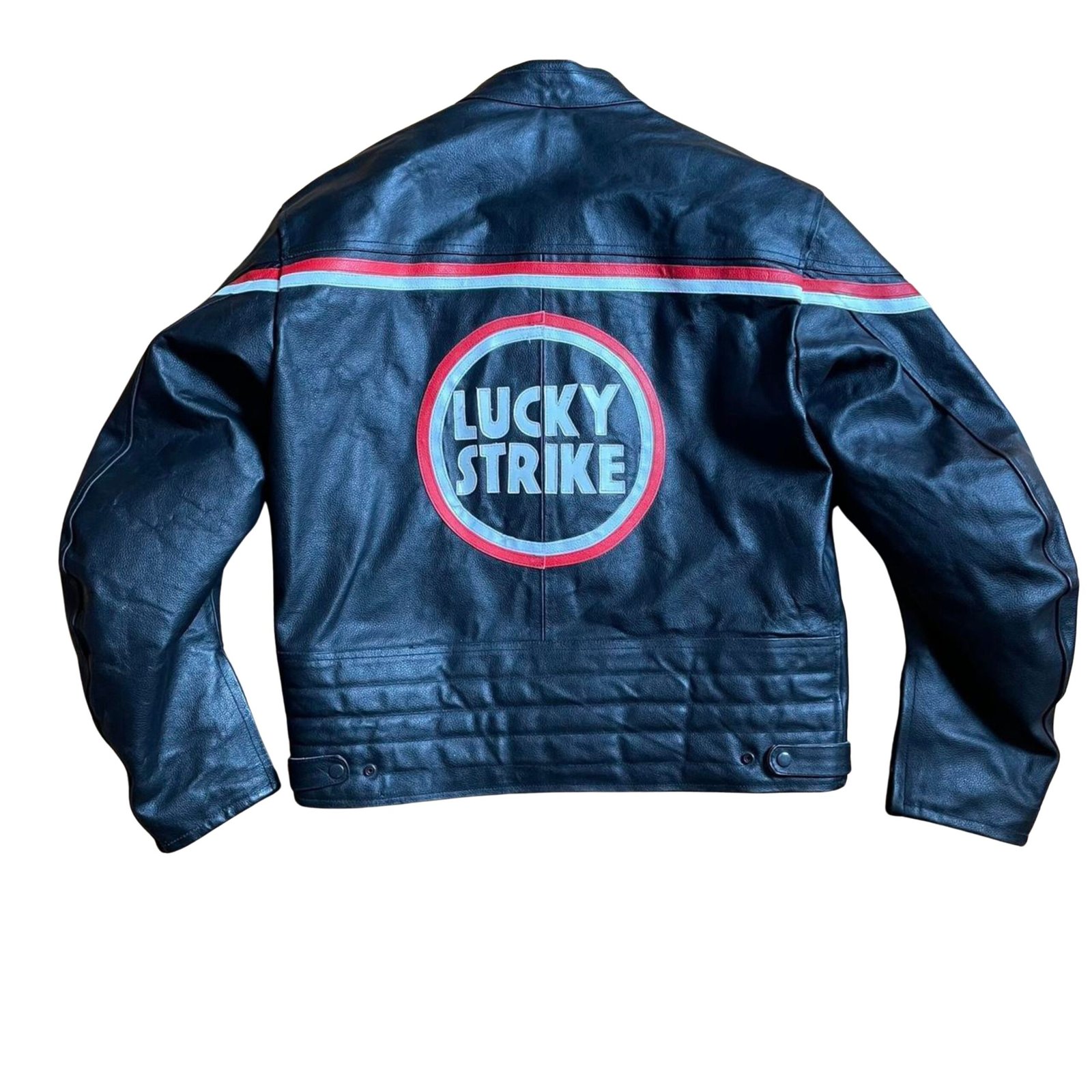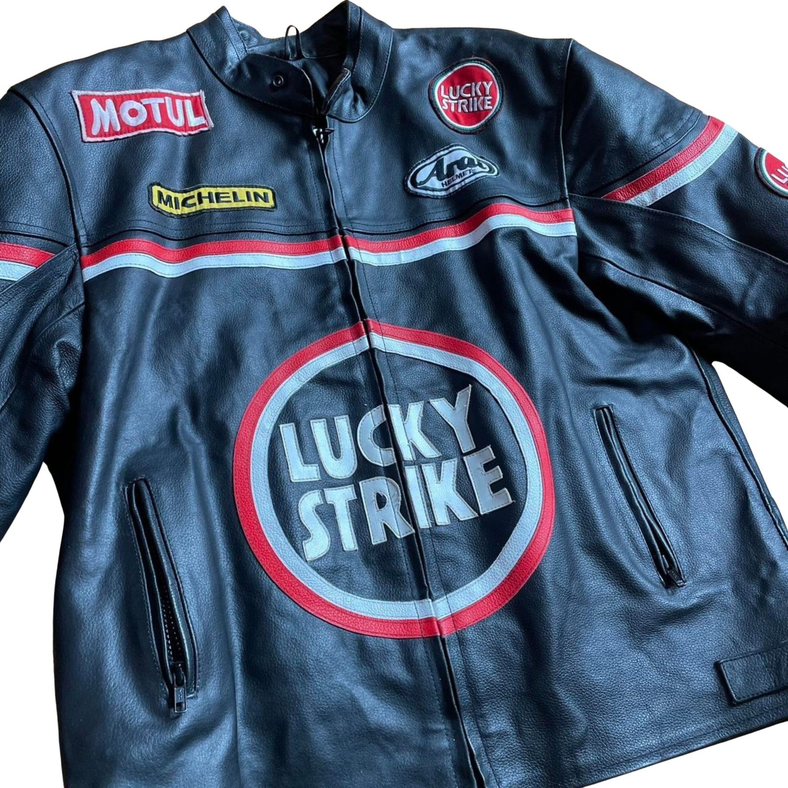 NARSON LUCKY STRIKE UNISEX BLACK RACING MOTORCYCLE COWHIDE LEATHER JACKET