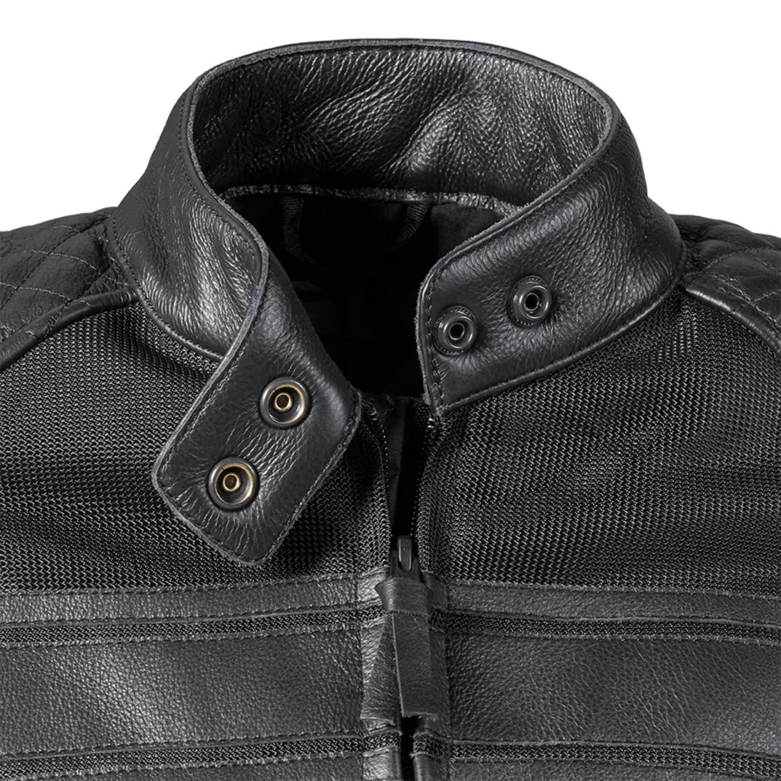 The Women’s Classic Racer Neck Biker Jacket combines timeless motorcycle-inspired style with modern functionality, crafted for riders who demand both protection and elegance. Designed with a tailored women’s fit, it ensures comfort and freedom of movement, making it an ideal choice for everyday rides or longer journeys. The jacket’s blend of durable mesh textile and premium leather panels creates a versatile construction that balances breathability, resilience, and premium aesthetics.
