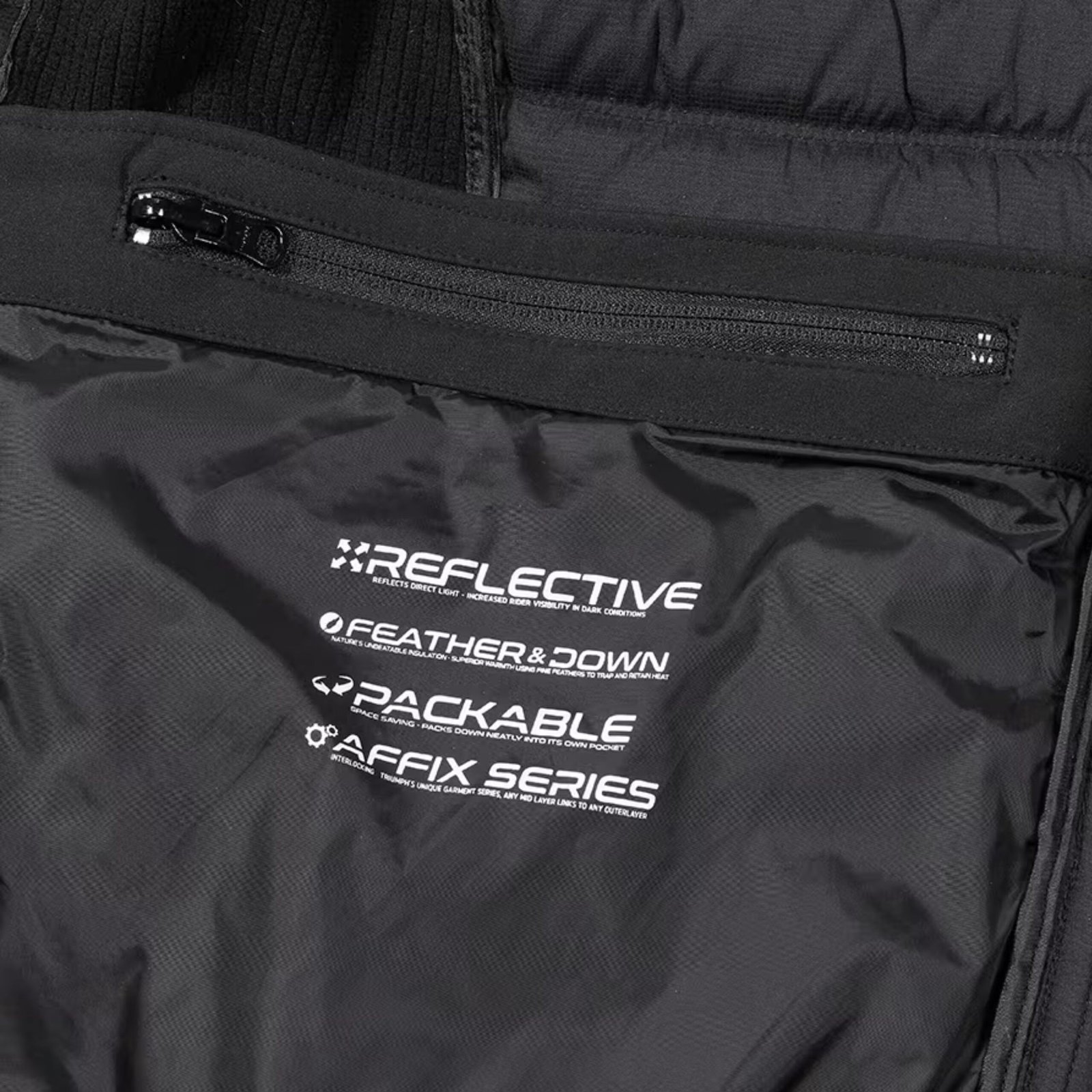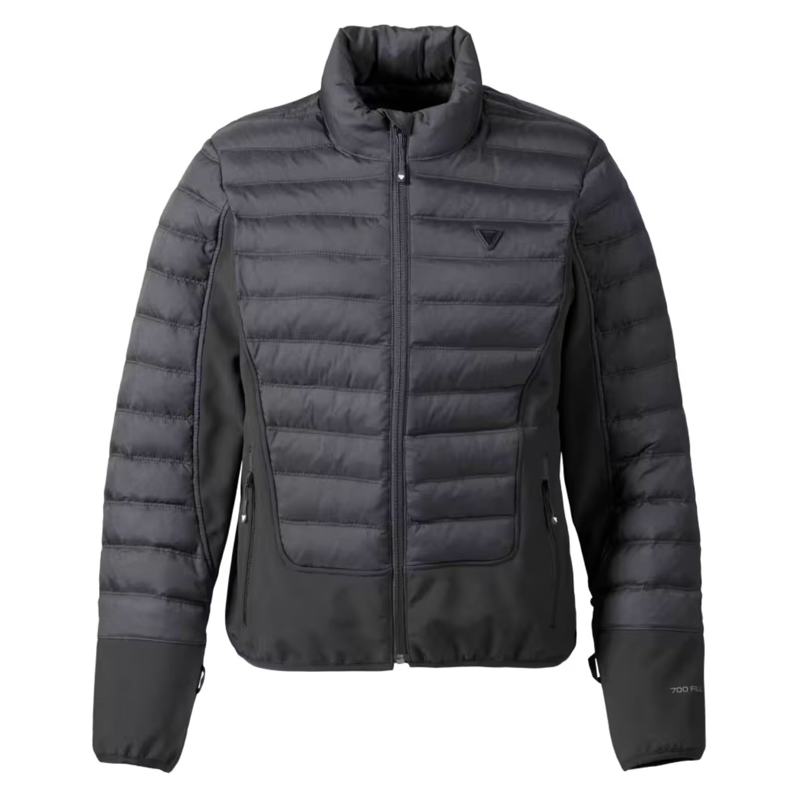 Construction features include baffle-style tubing filled with a premium 90/10 down and feather combination boasting 700 fill power. This high-quality insulation traps heat and distributes it evenly across the body, offering excellent temperature stability for long rides in colder environments. The design balances warmth and flexibility, allowing riders to layer effectively under outer jackets without feeling encumbered.